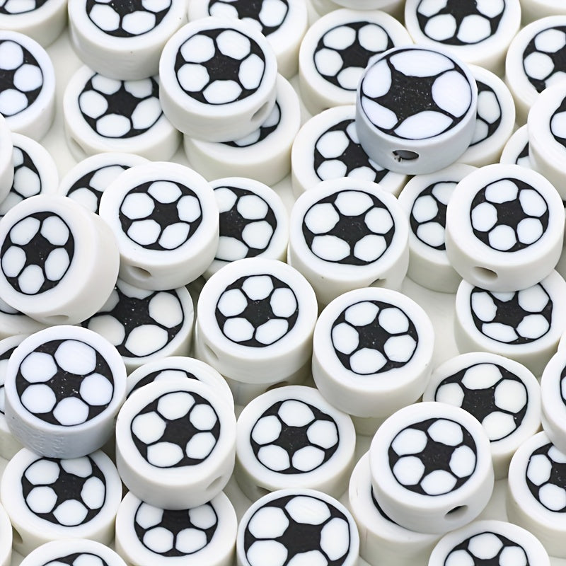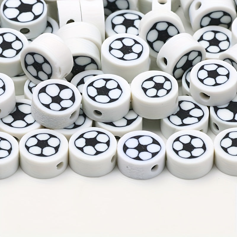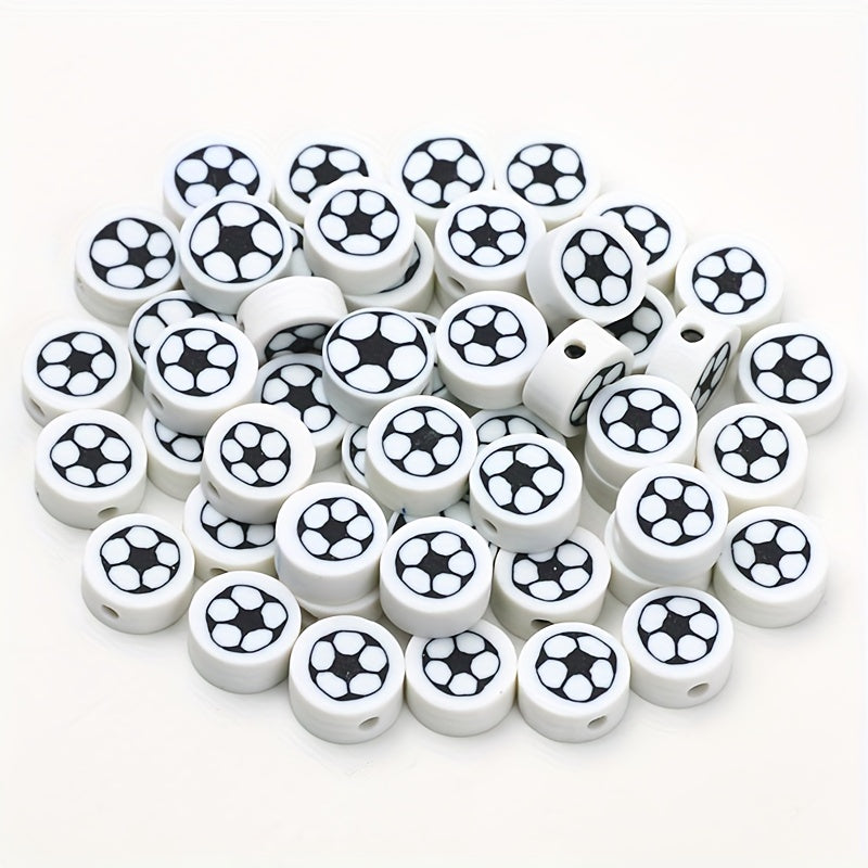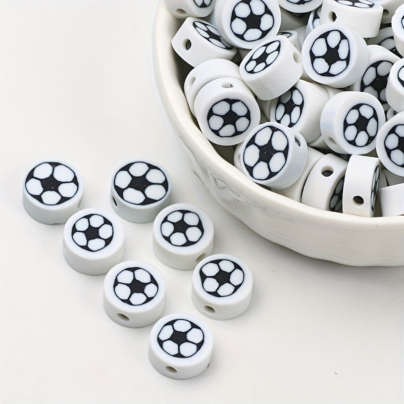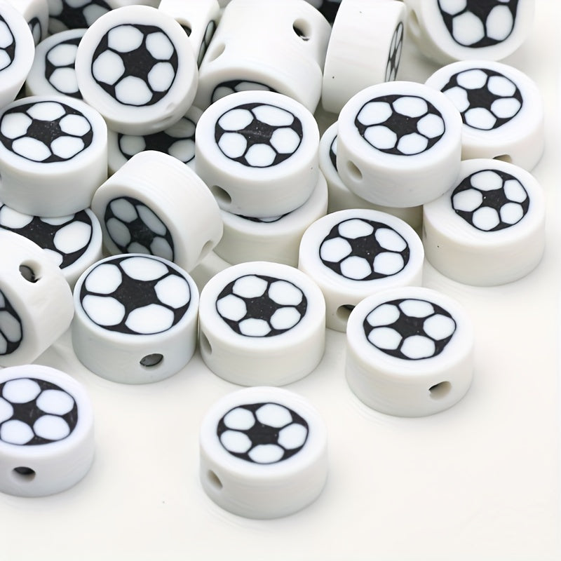 Create unique jewelry and accessories with these football pattern soft pottery beads. Perfect for bracelets, necklaces, earrings, key chains, and more.