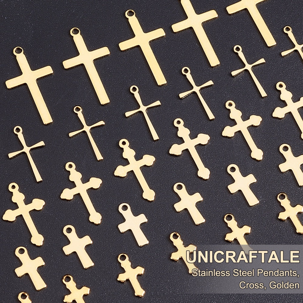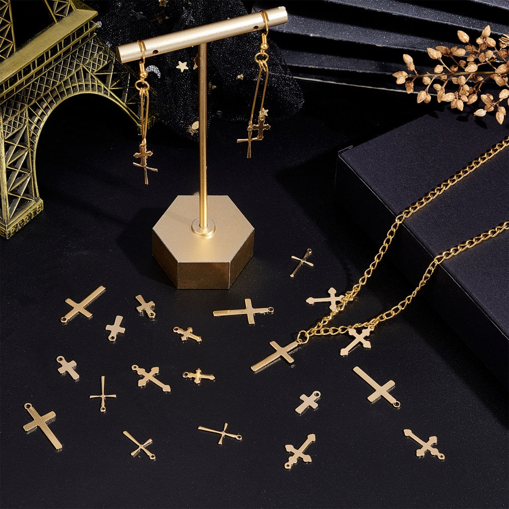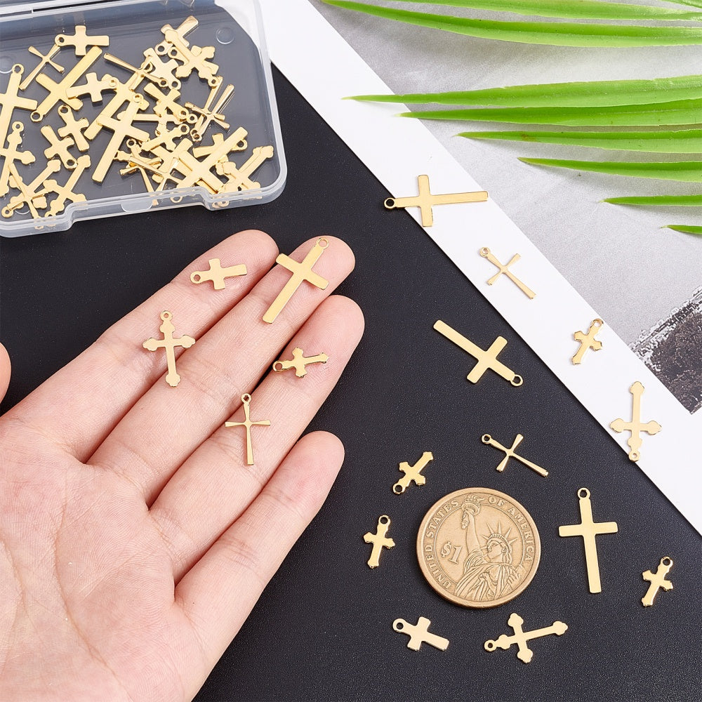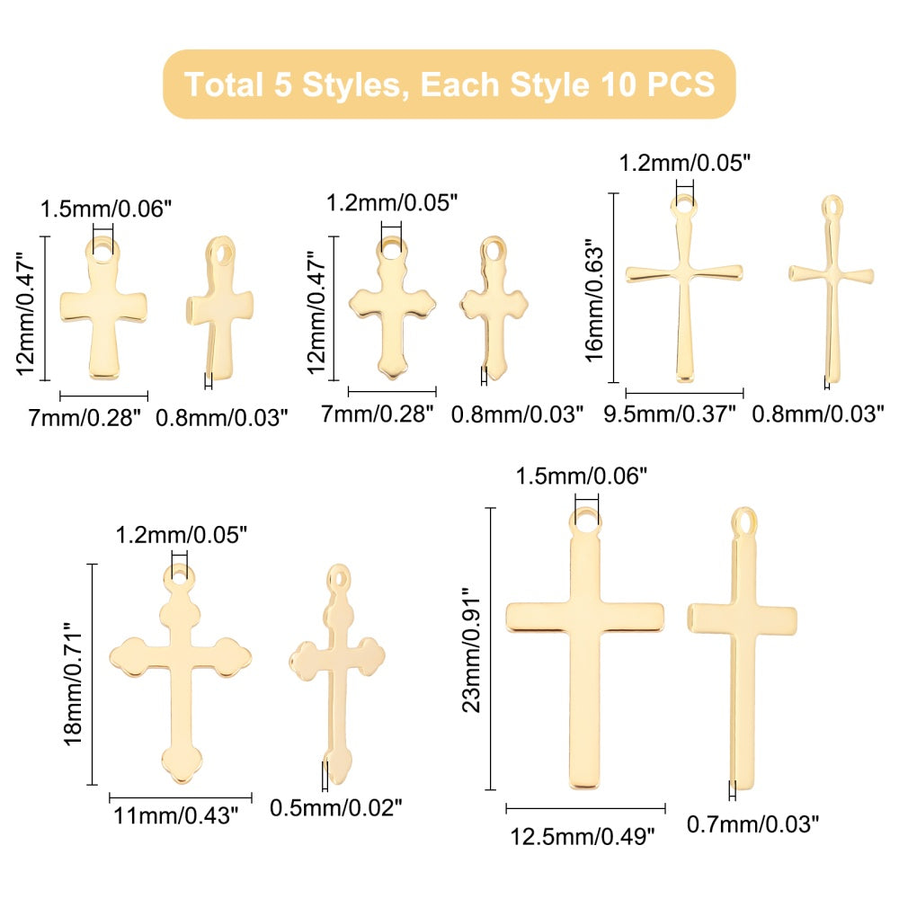 Elevate your DIY jewelry projects with this set of 50 cross charms in 5 different styles. Perfect for creating earrings, necklaces, bracelets, and anklets.