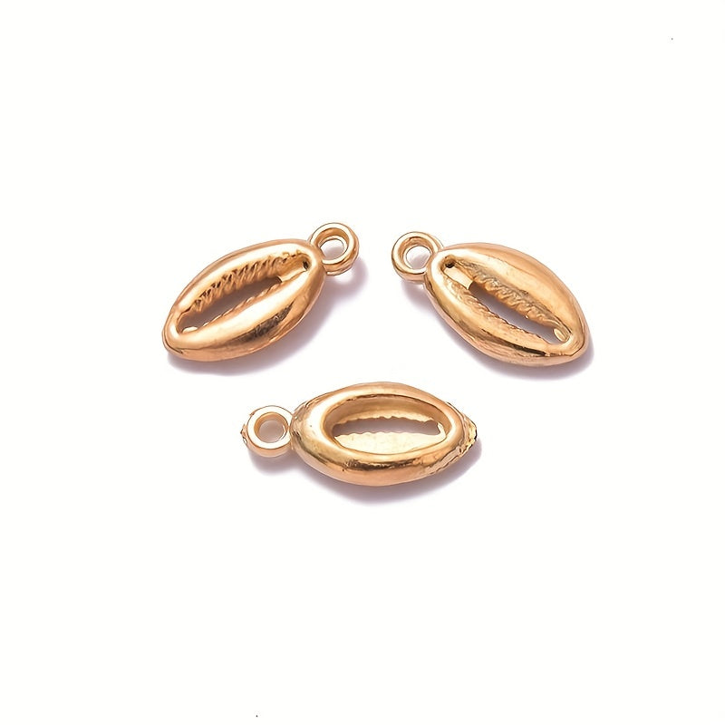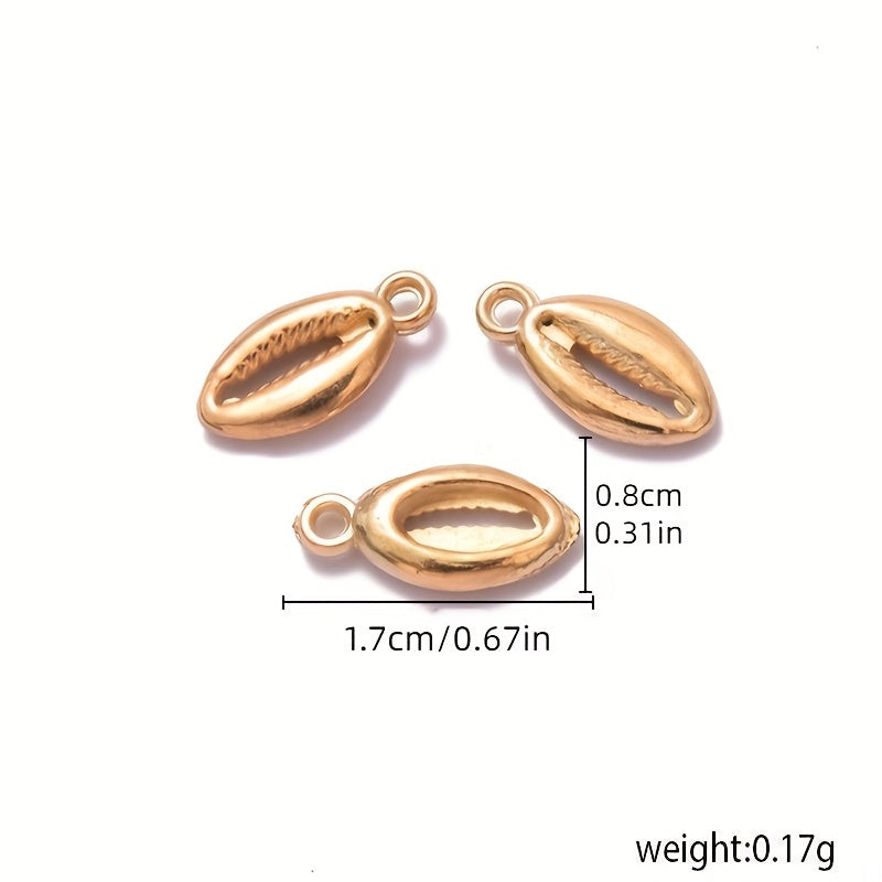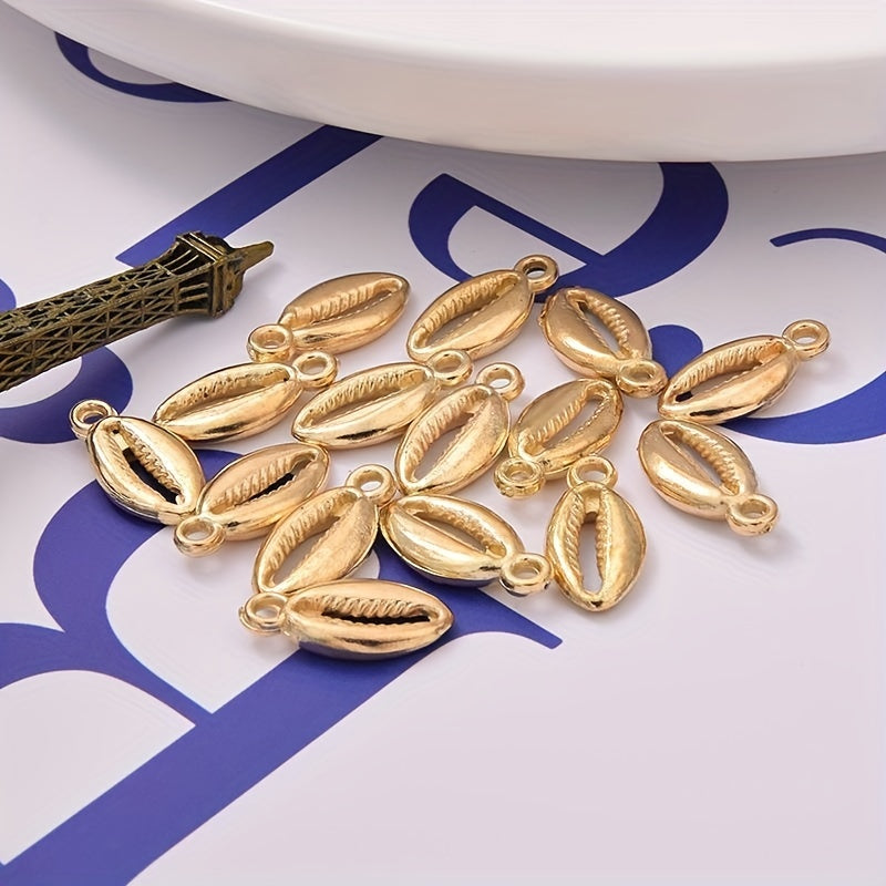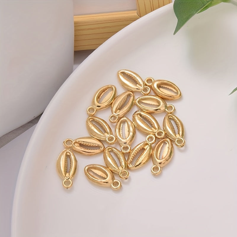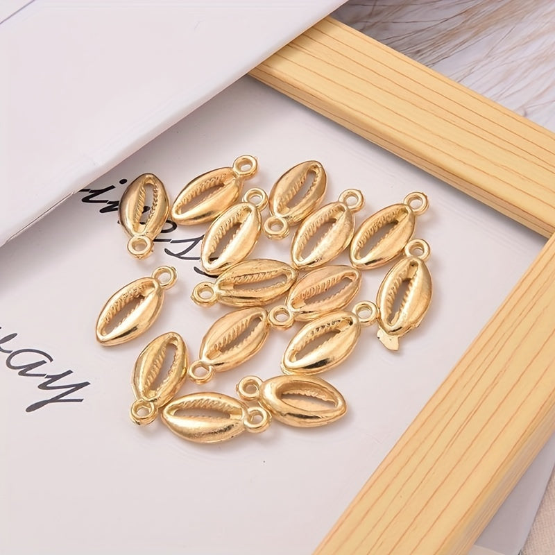 Enhance your jewelry-making projects with this set of 50pcs golden hollow shell plastic pendants. Perfect for creating earrings, bracelets, necklaces, and more.