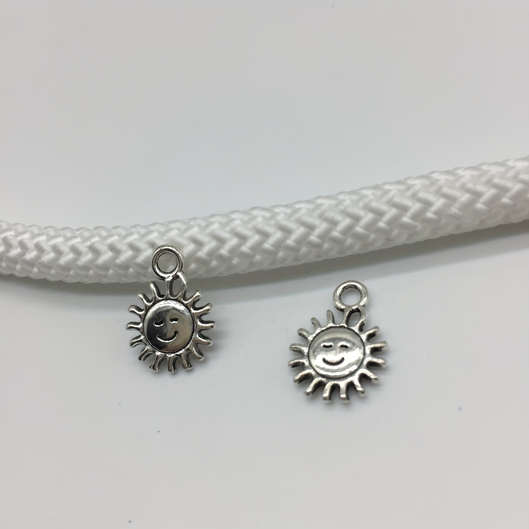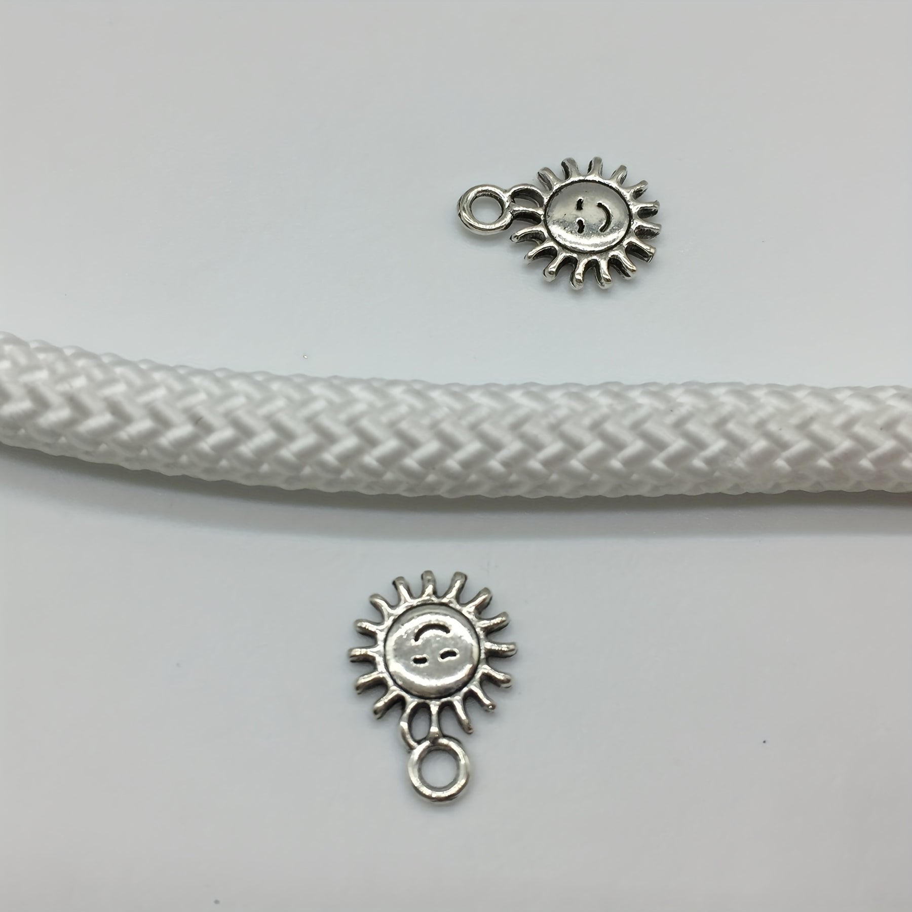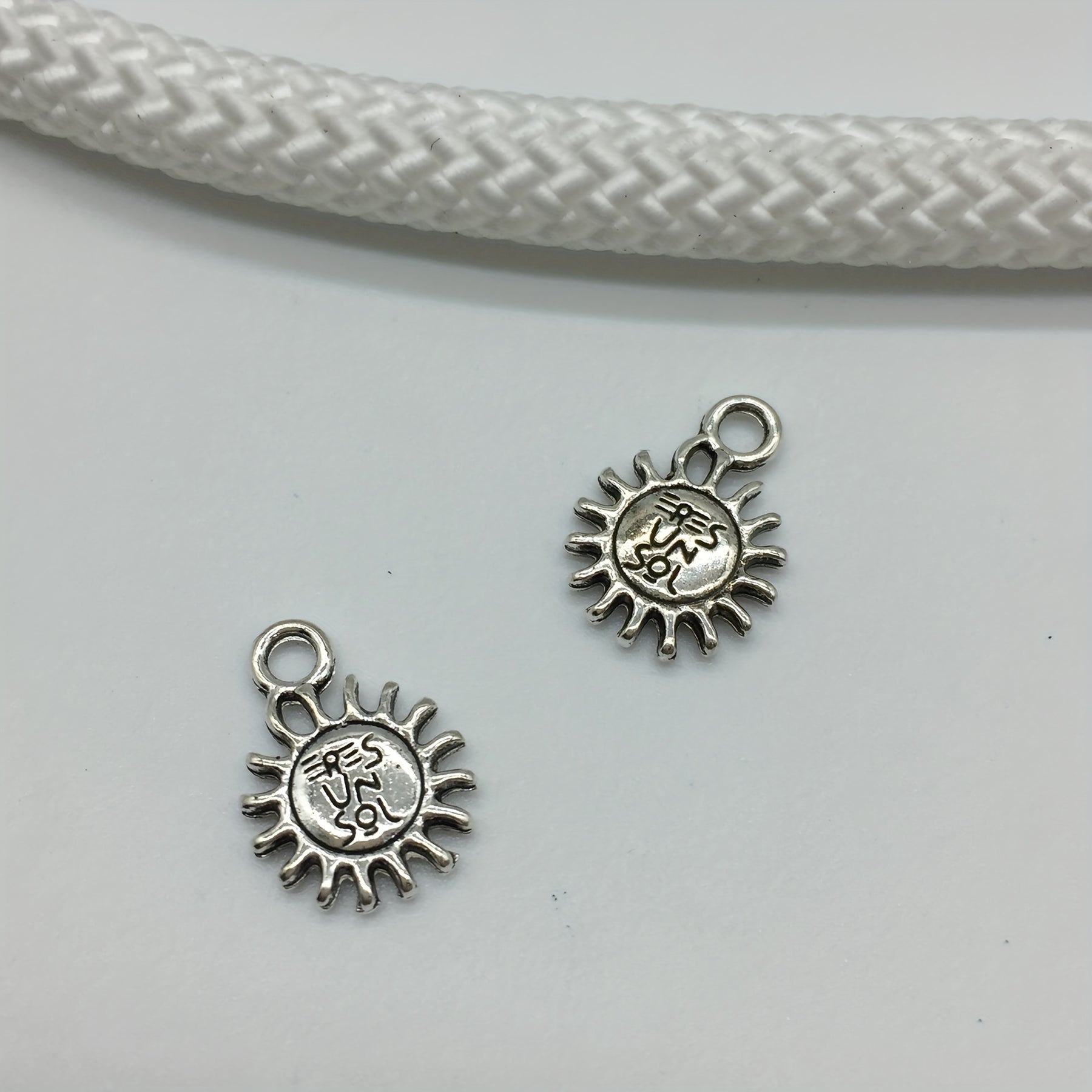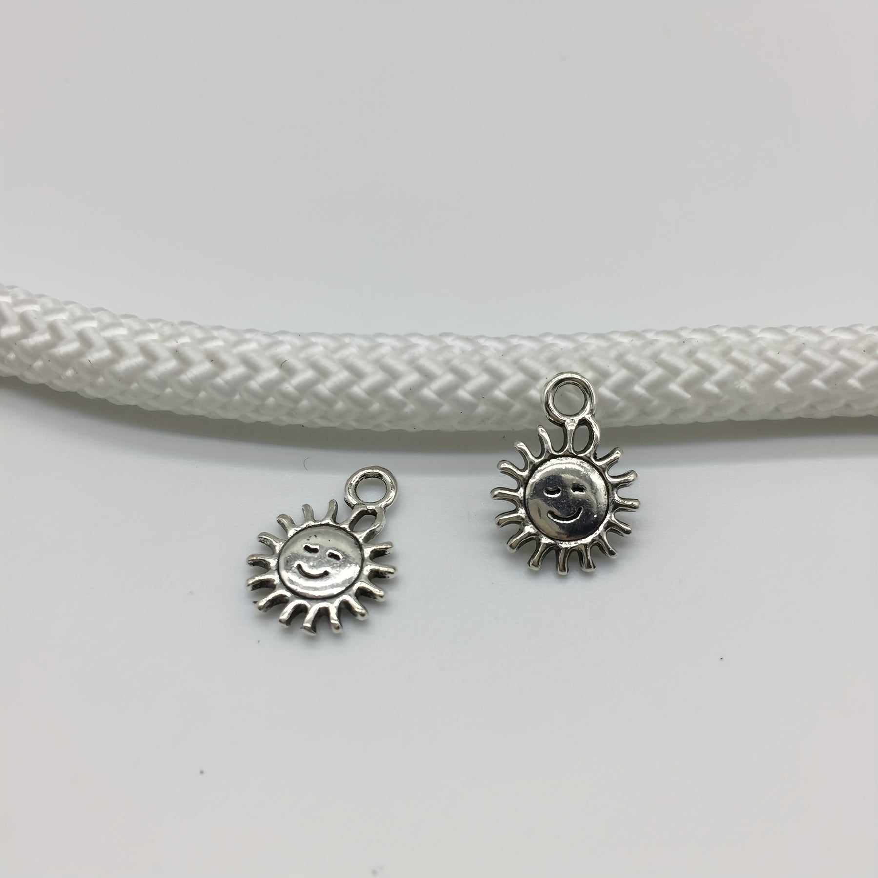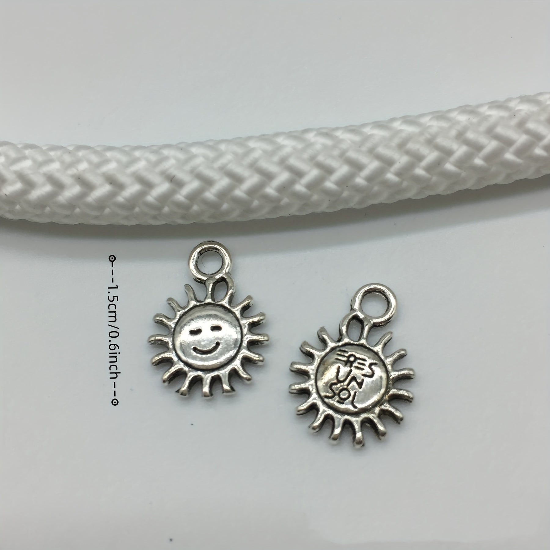 Get creative with these silvery alloy pendants featuring a happy face sun design. Perfect for making your own unique jewelry pieces.