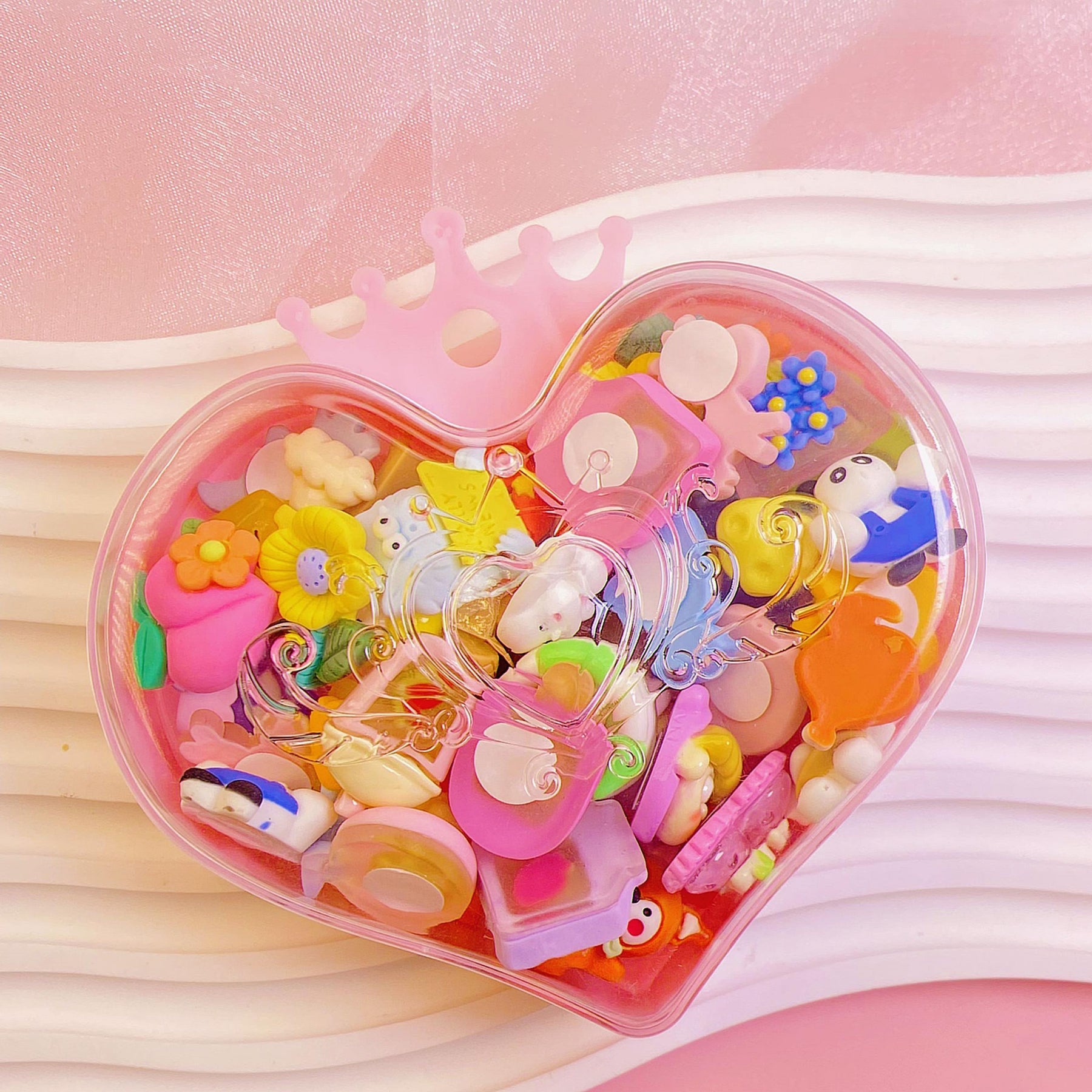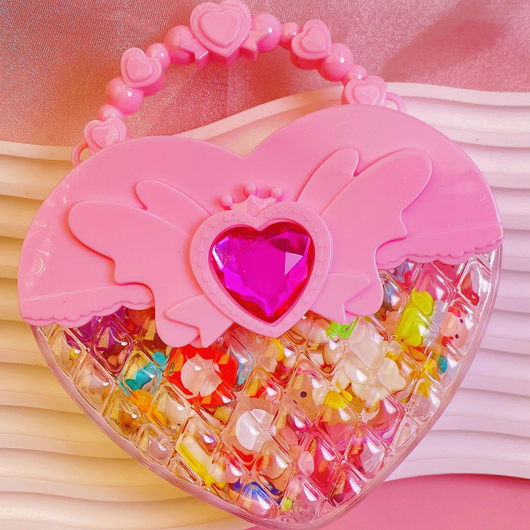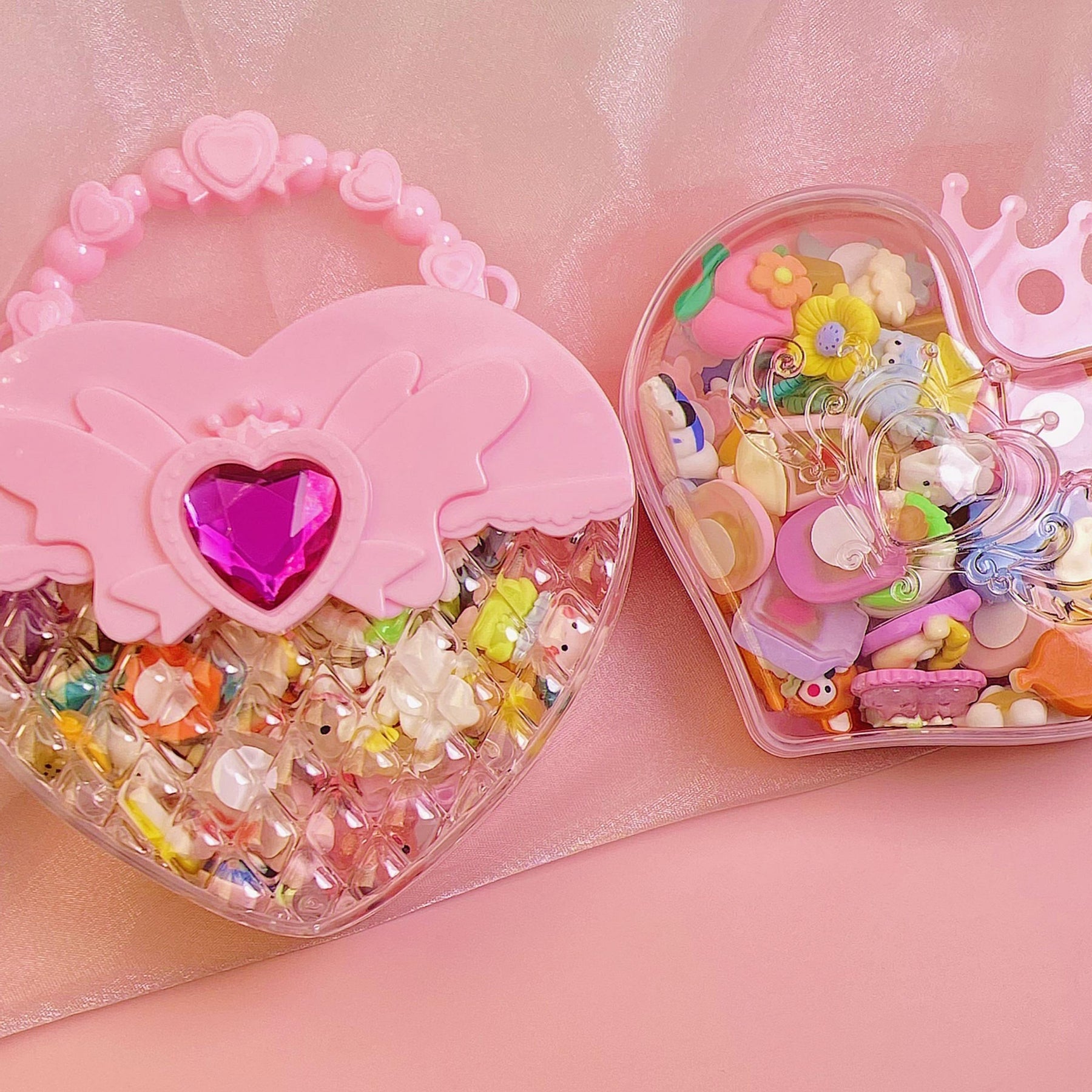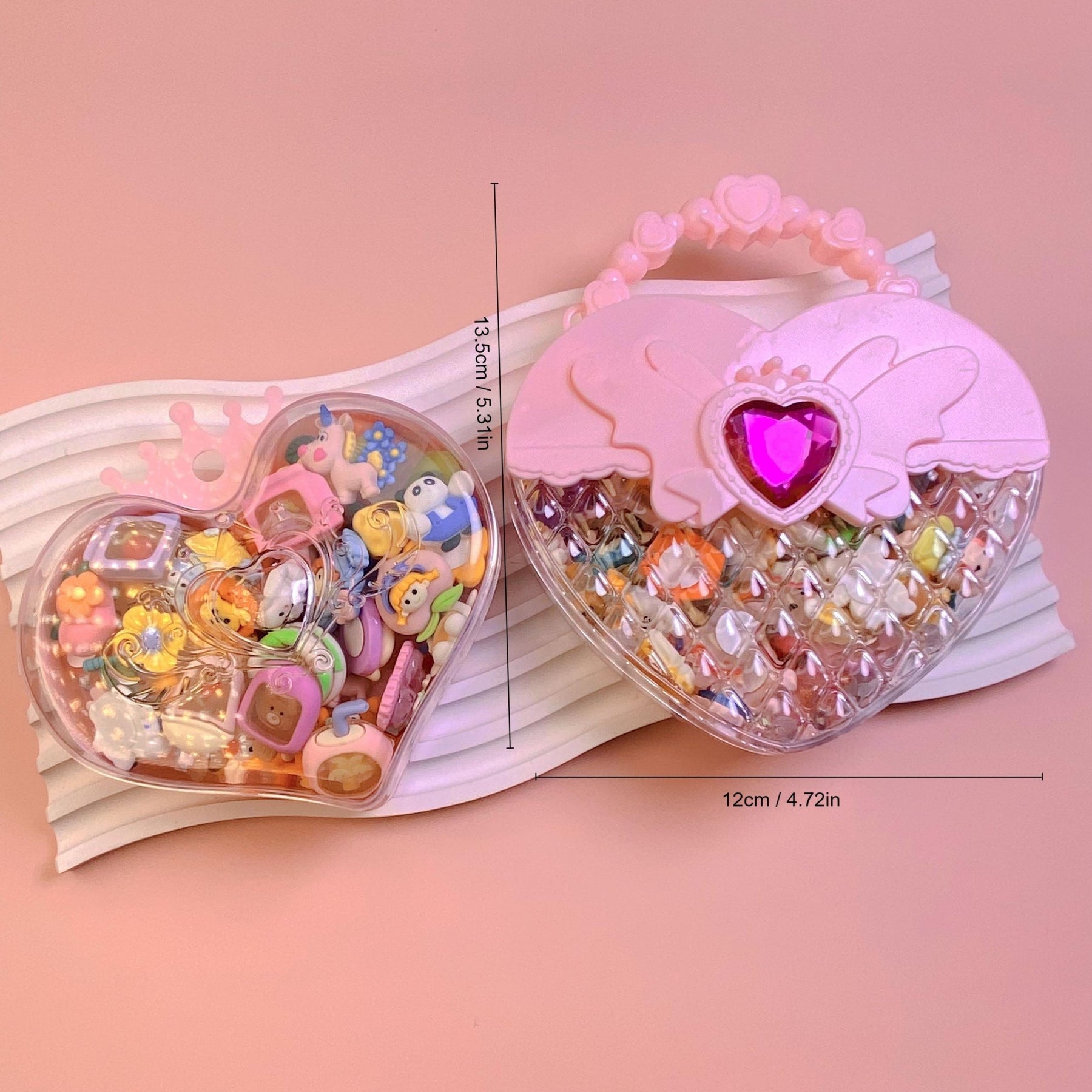 This set includes heart-shaped items perfect for making necklaces, earrings, rings, and manicures. Ideal for girls' DIY projects and gifts.