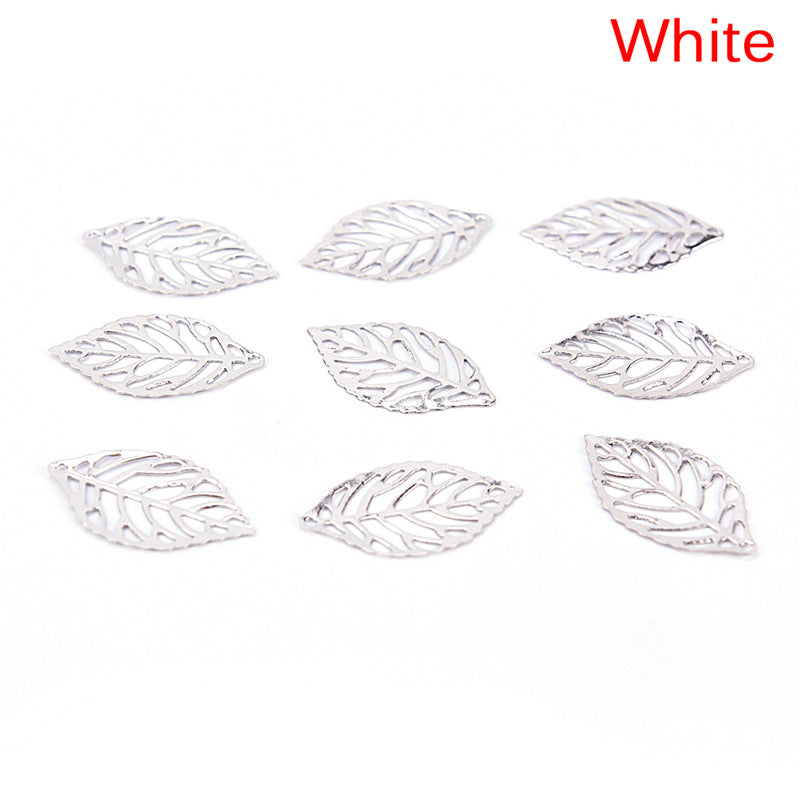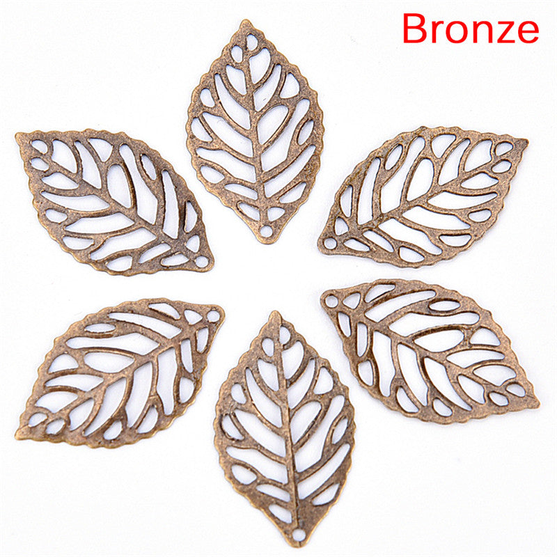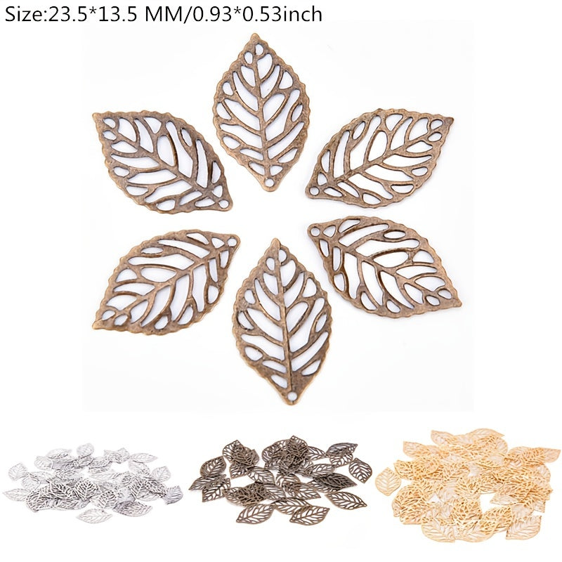 50pcs Hollow Leaf Pendant Jewelry Golden Charm Filigree Casted Metal