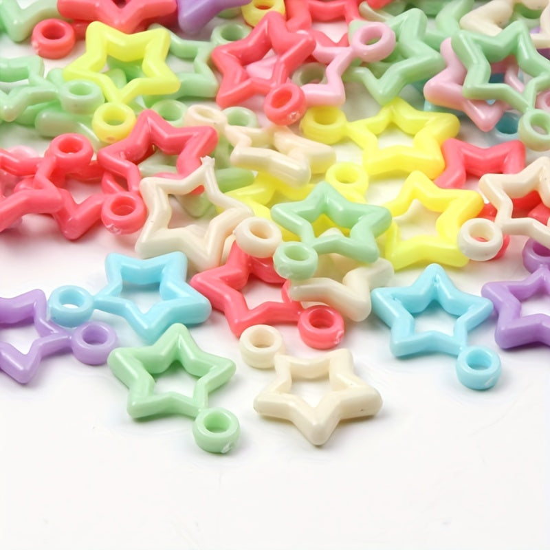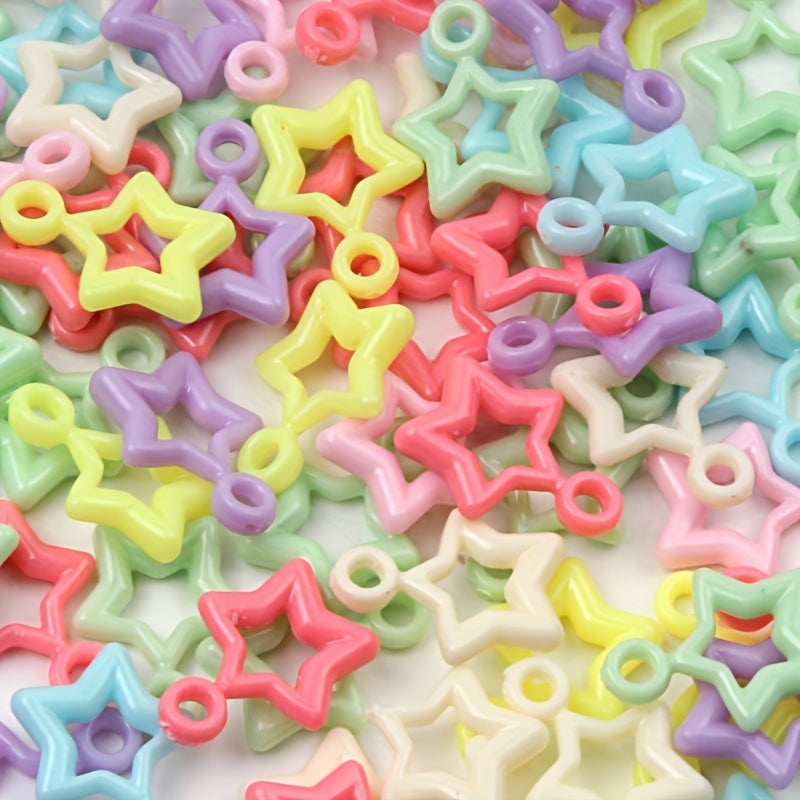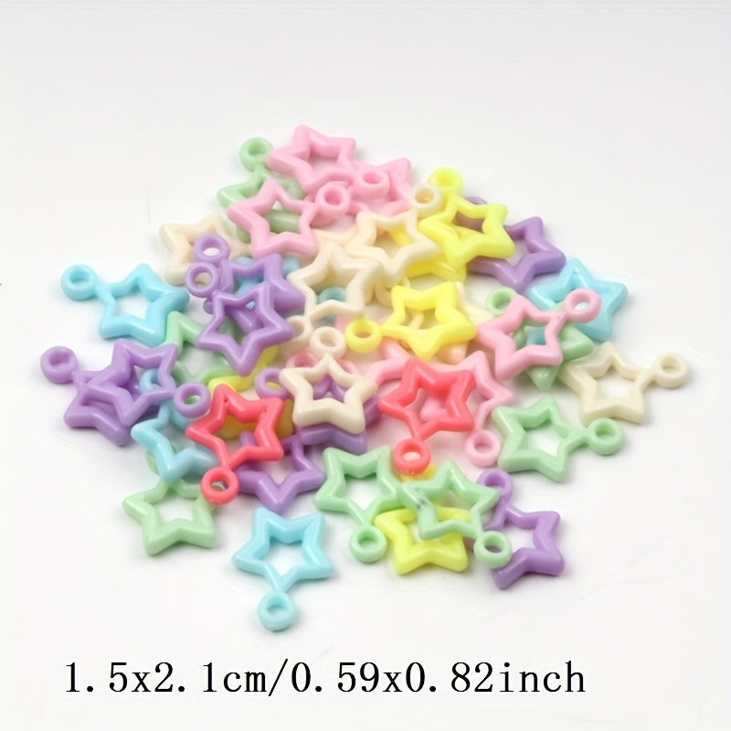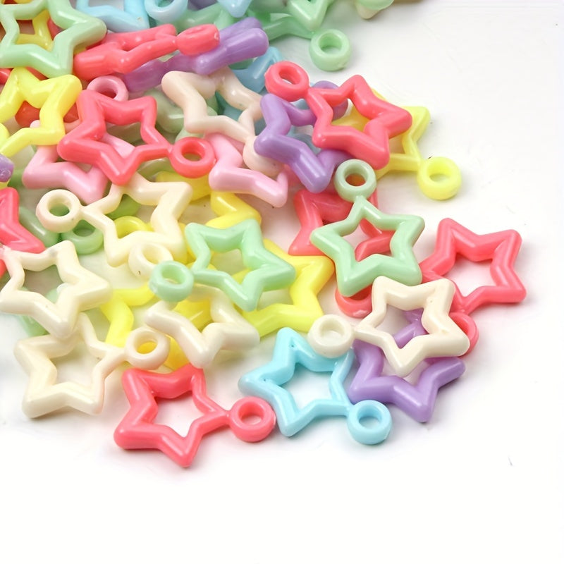Add a touch of colorful charm to your accessories with these 15-21mm hollow pentagram-shaped plastic pendants. Ideal for creating your own unique earrings, bracelets, necklaces, and more.