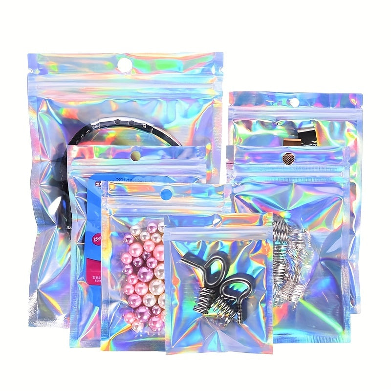 50PCS Laser Ziplock Bag Pearlescent Film Seal Jewelry Storage Bag