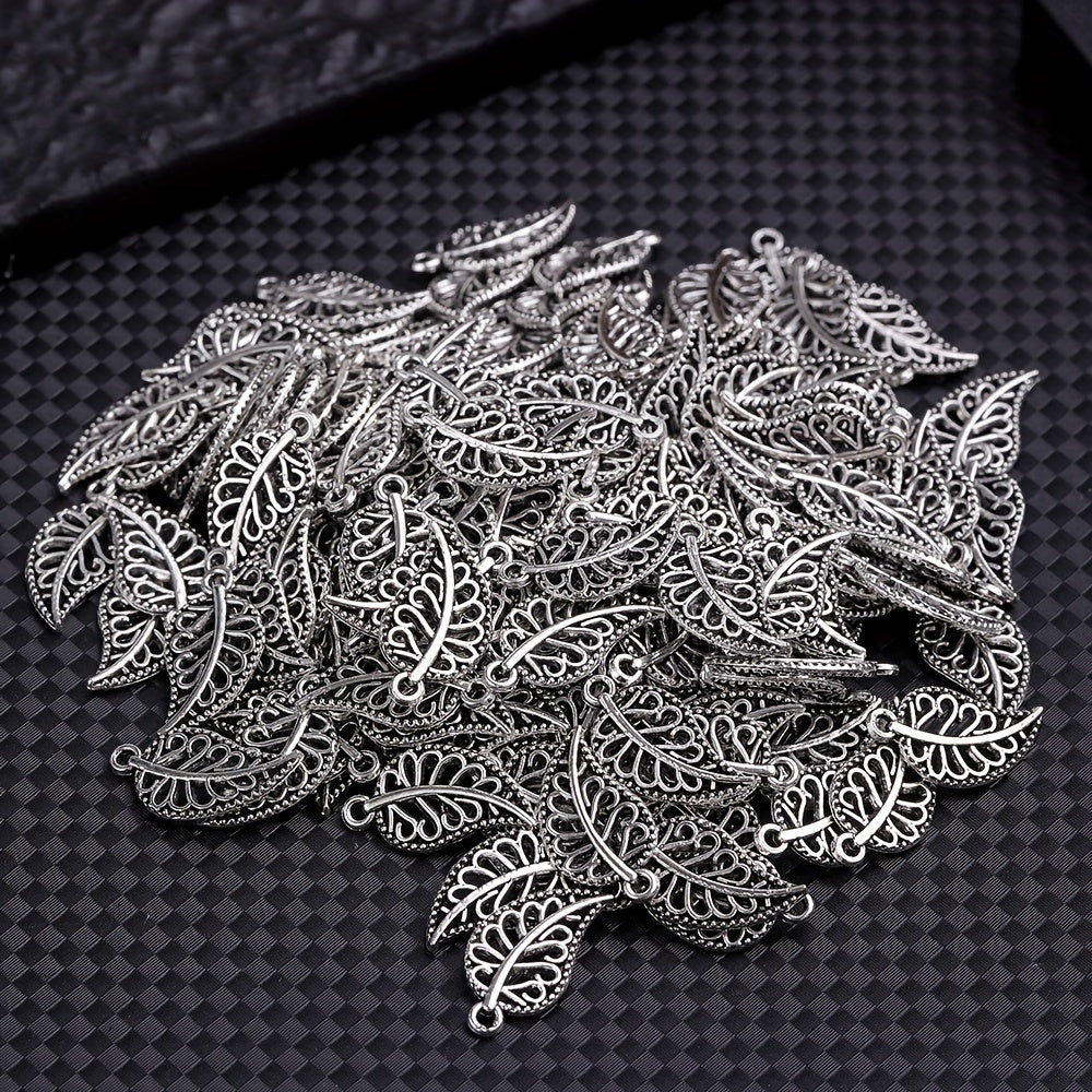 50pcs Leaf Alloy Pendant for DIY Jewelry Making