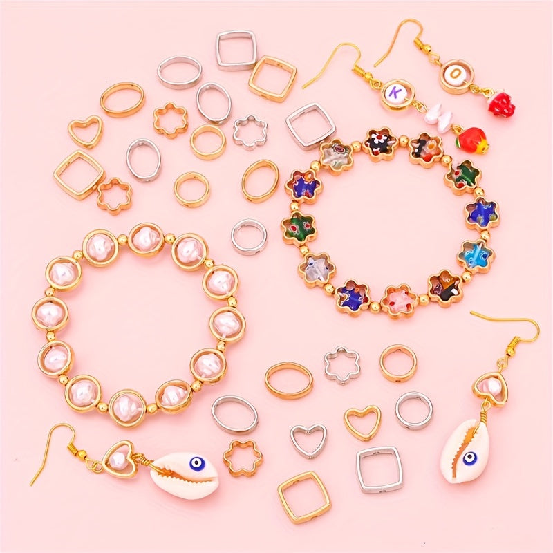 50pcs Love Heart Oval Spacer Beads for Jewelry Making DIY