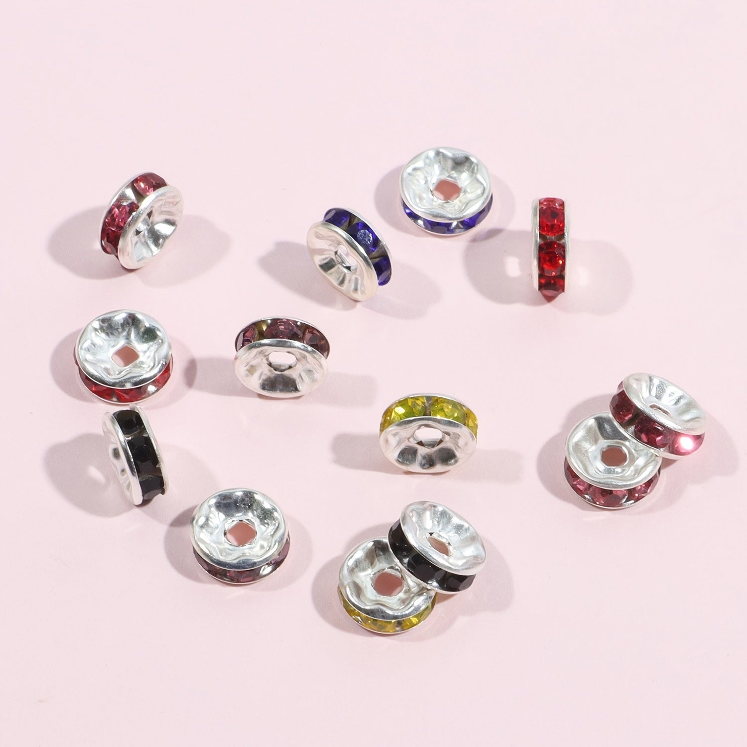 Add some sparkle to your jewelry projects with these metal rhinestone spacer beads. Available in 11 vibrant colors, these beads are perfect for adding a touch of elegance to your designs.