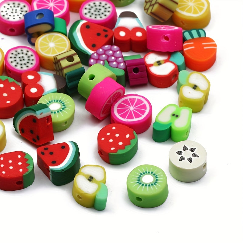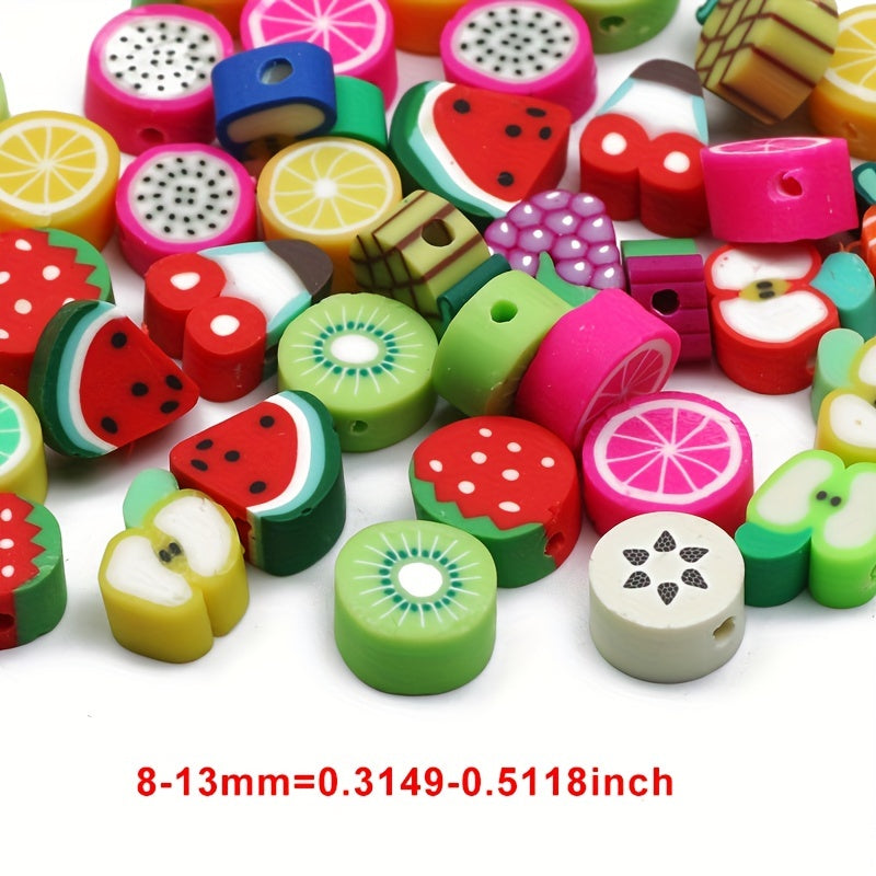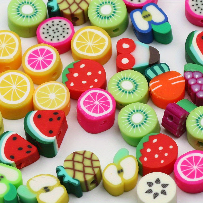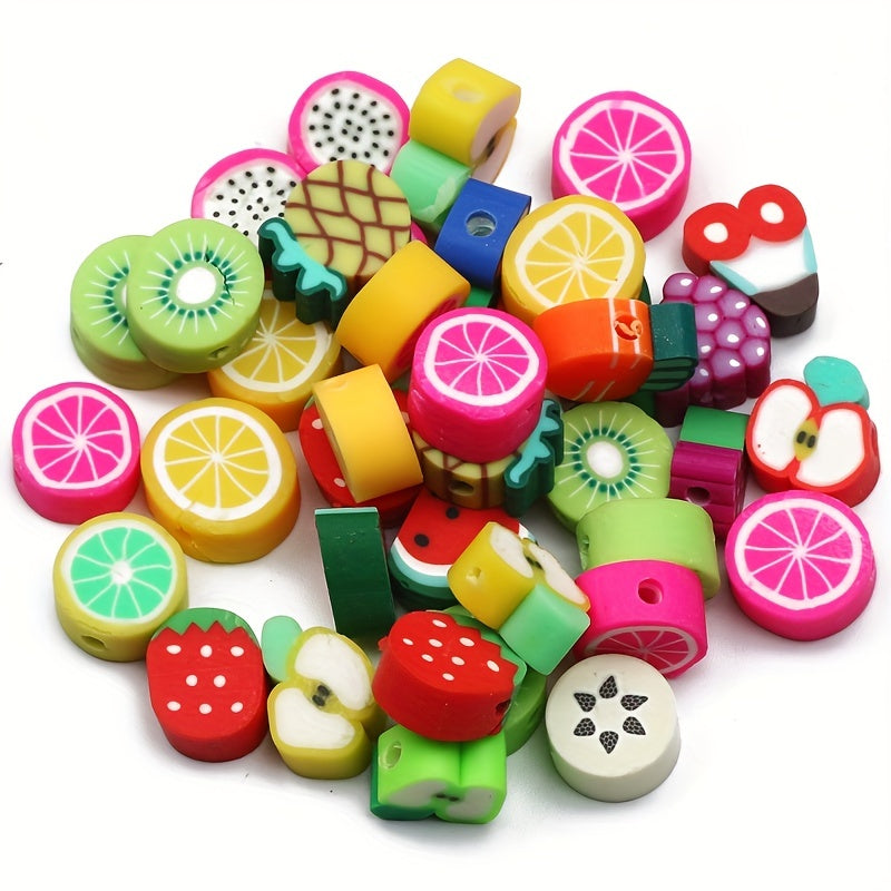 Create unique jewelry pieces with this set of 50 random mixed fruit series polymer loose beads. Perfect for bracelets, necklaces, pendants, and phone chains.