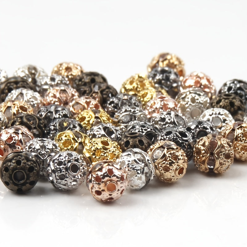 Enhance your jewelry creations with this set of 50 mixed metal copper diamond ball beads. These beads are perfect for adding a touch of elegance and uniqueness to your designs.