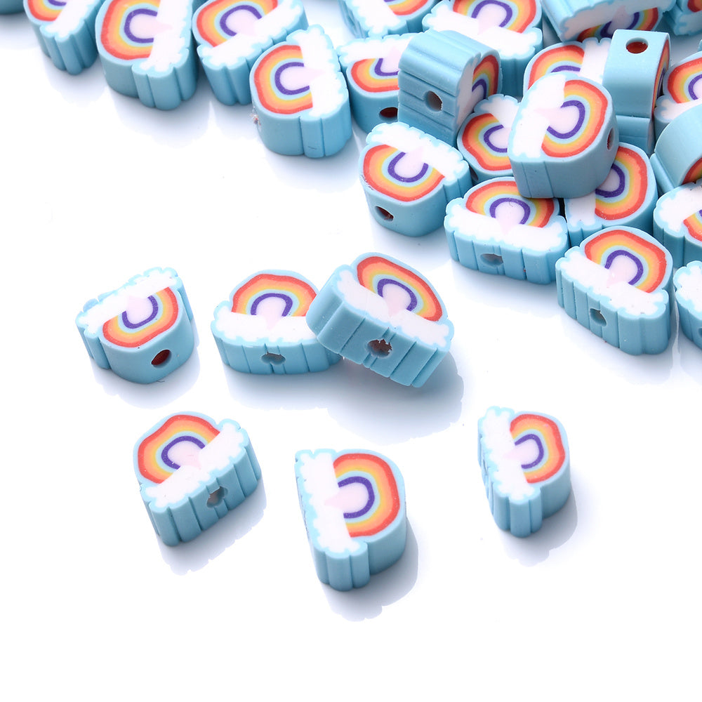 50pcs Rainbow Anime Clay Beads for DIY Bracelet Necklace Pendant