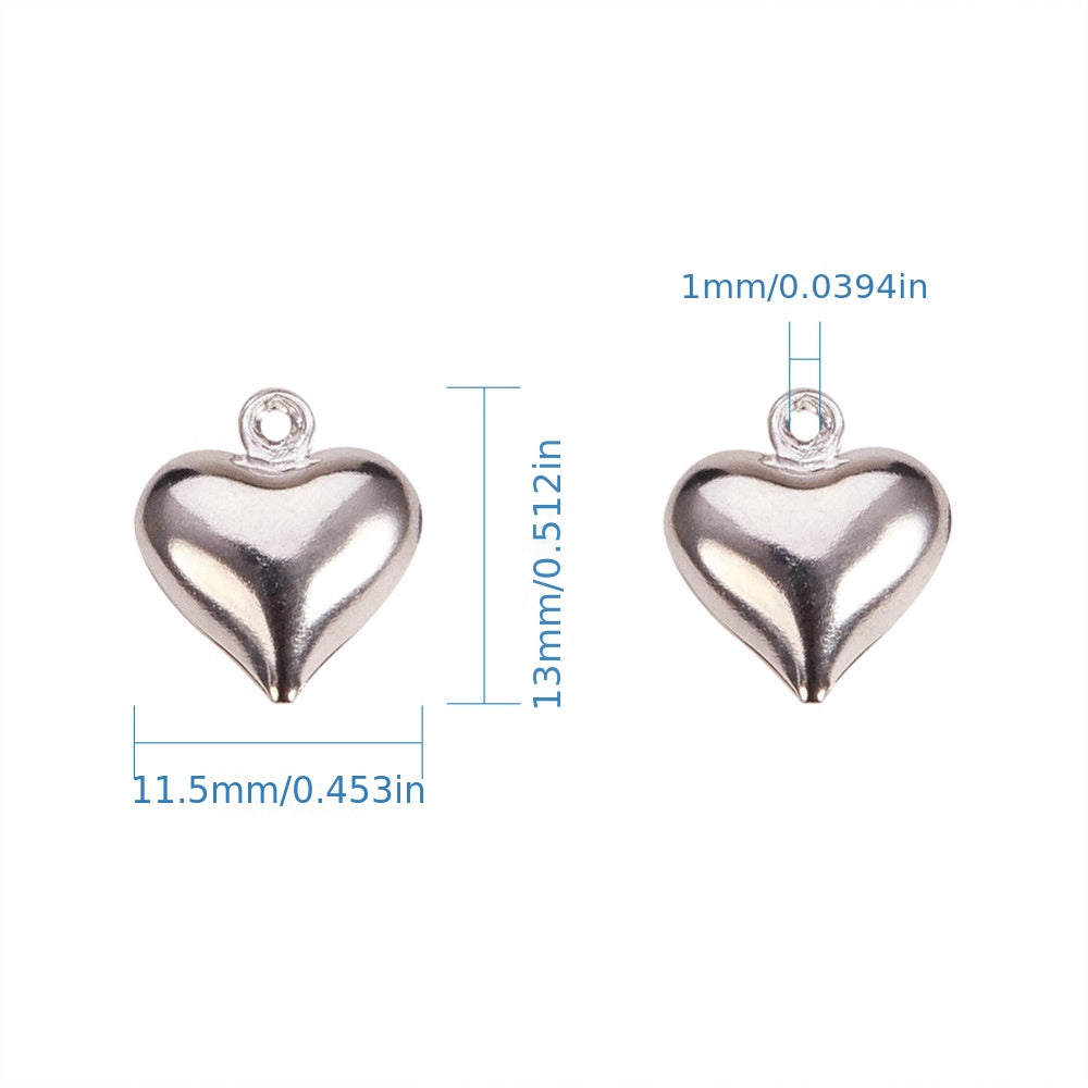 Add a touch of elegance to your jewelry creations with these silver brass heart shape charms. Perfect for Christmas, weddings, and decorations. Each charm measures 13x11.5x4.5mm.