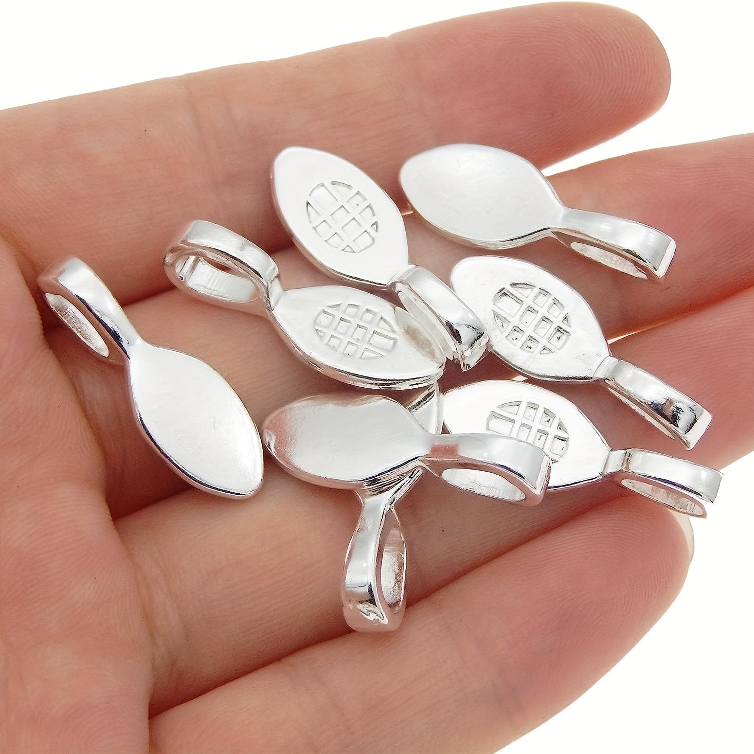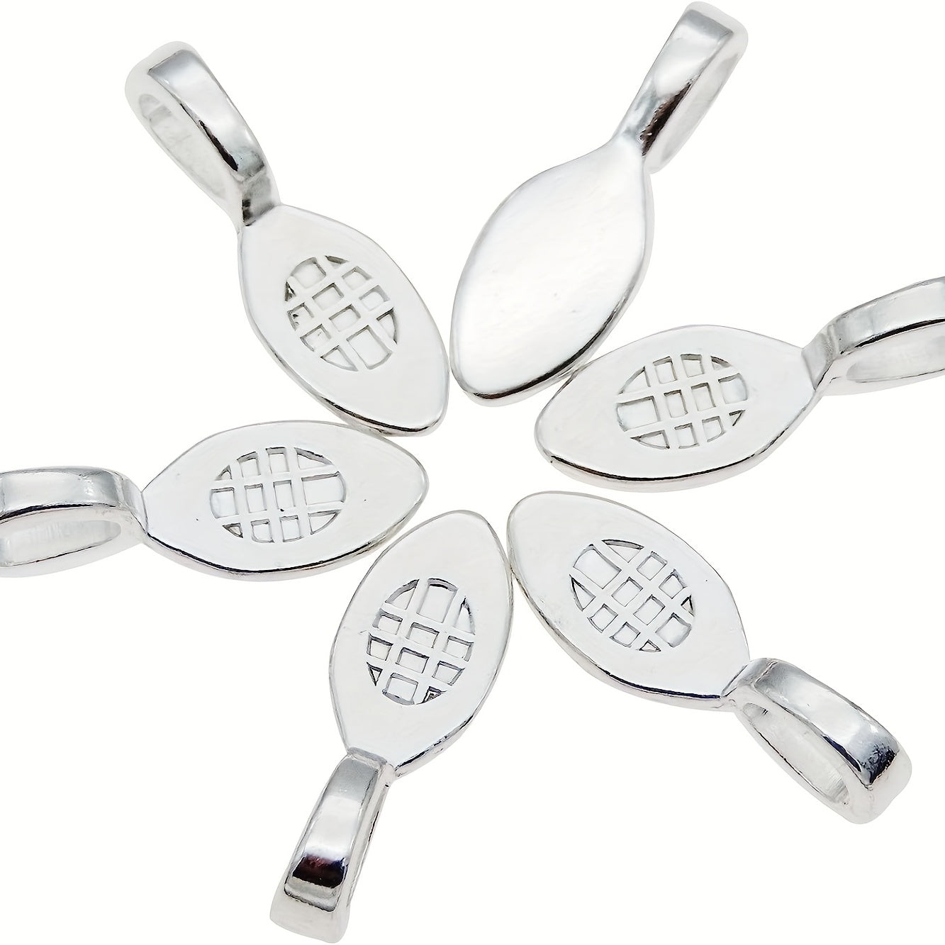 Enhance your DIY pendant projects with this set of 50 silver glue-on bail charm pendants. Perfect for glass tile creations, these bails provide a secure and stylish way to attach your pendants to chains or cords.