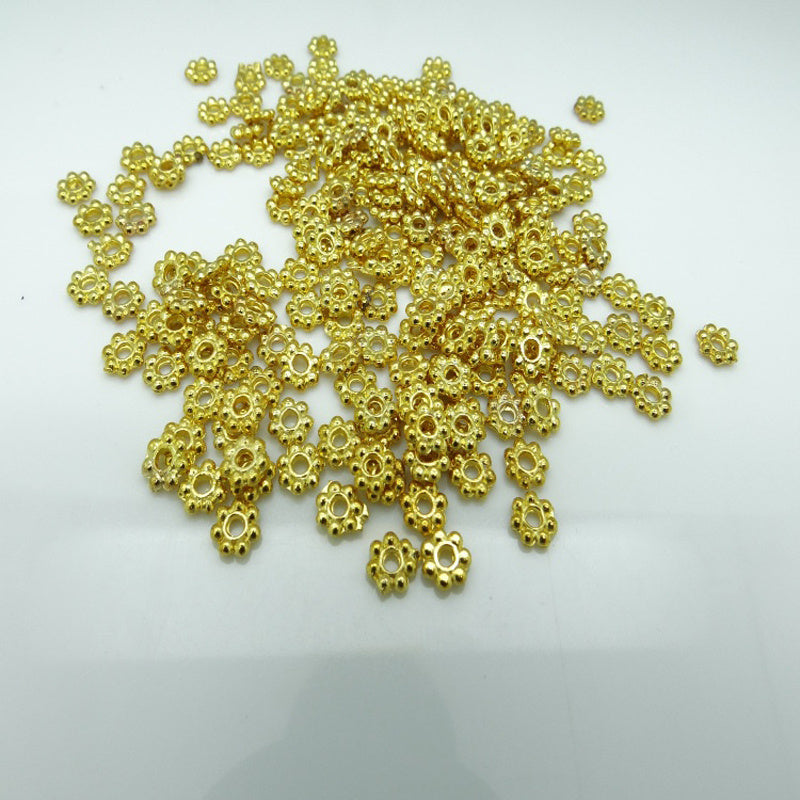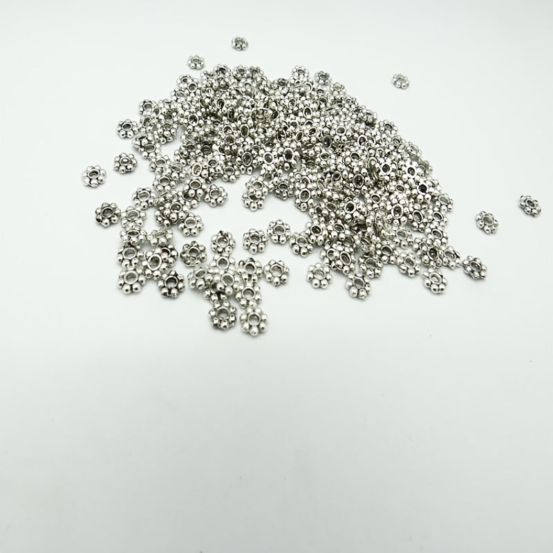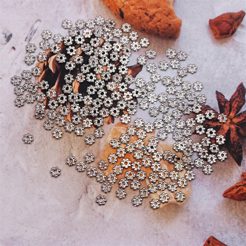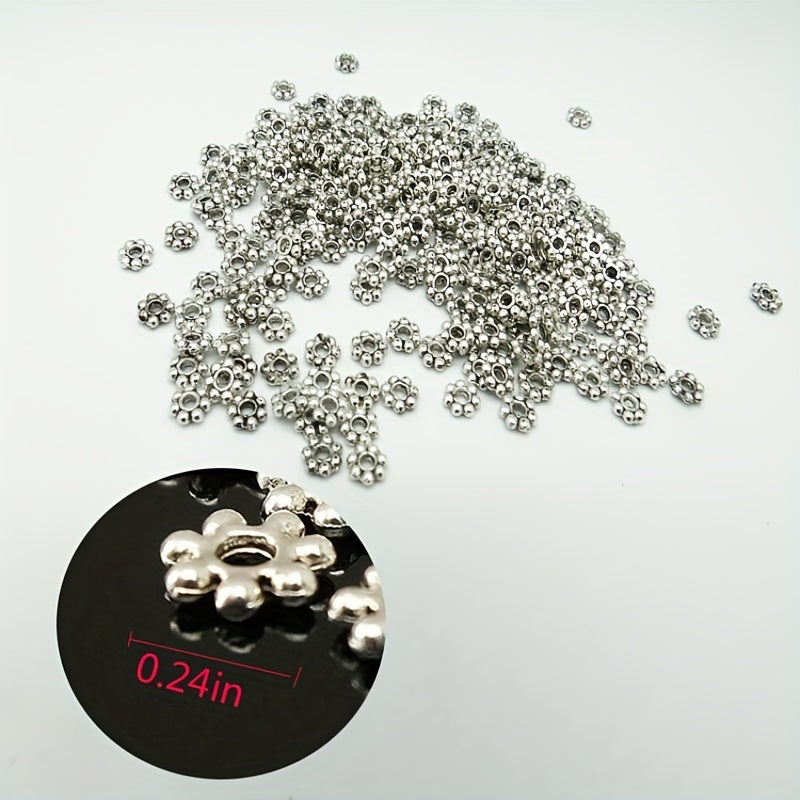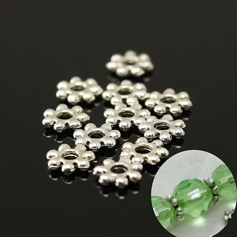 Enhance your jewelry making with these 50 silver plated daisy spacer metal beads. Each bead has a hole size of 6mm and is perfect for adding detail to your designs.