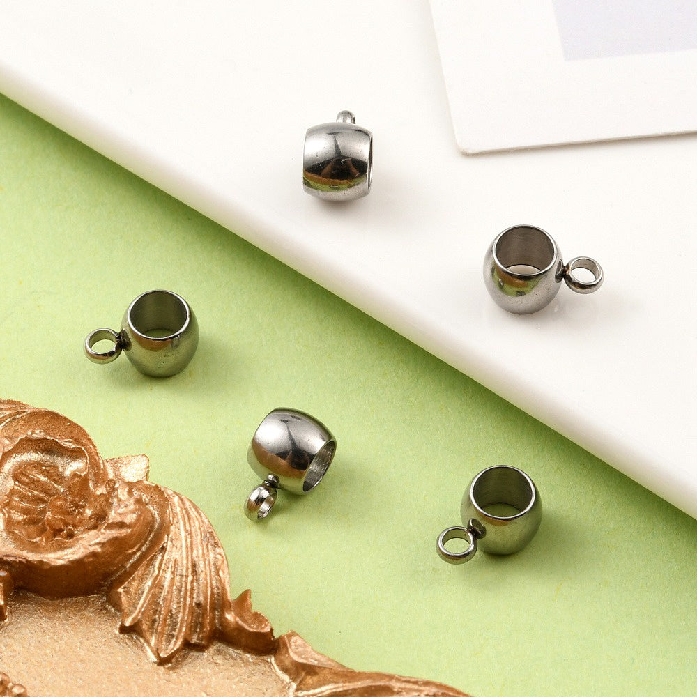 These stainless steel rondelle bail beads are perfect for jewelry making. Use them as spacer beads, hanger charms, or connectors in your DIY projects.