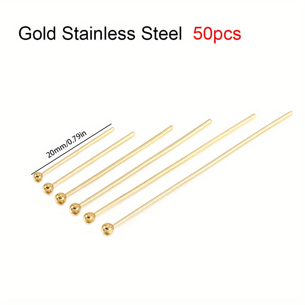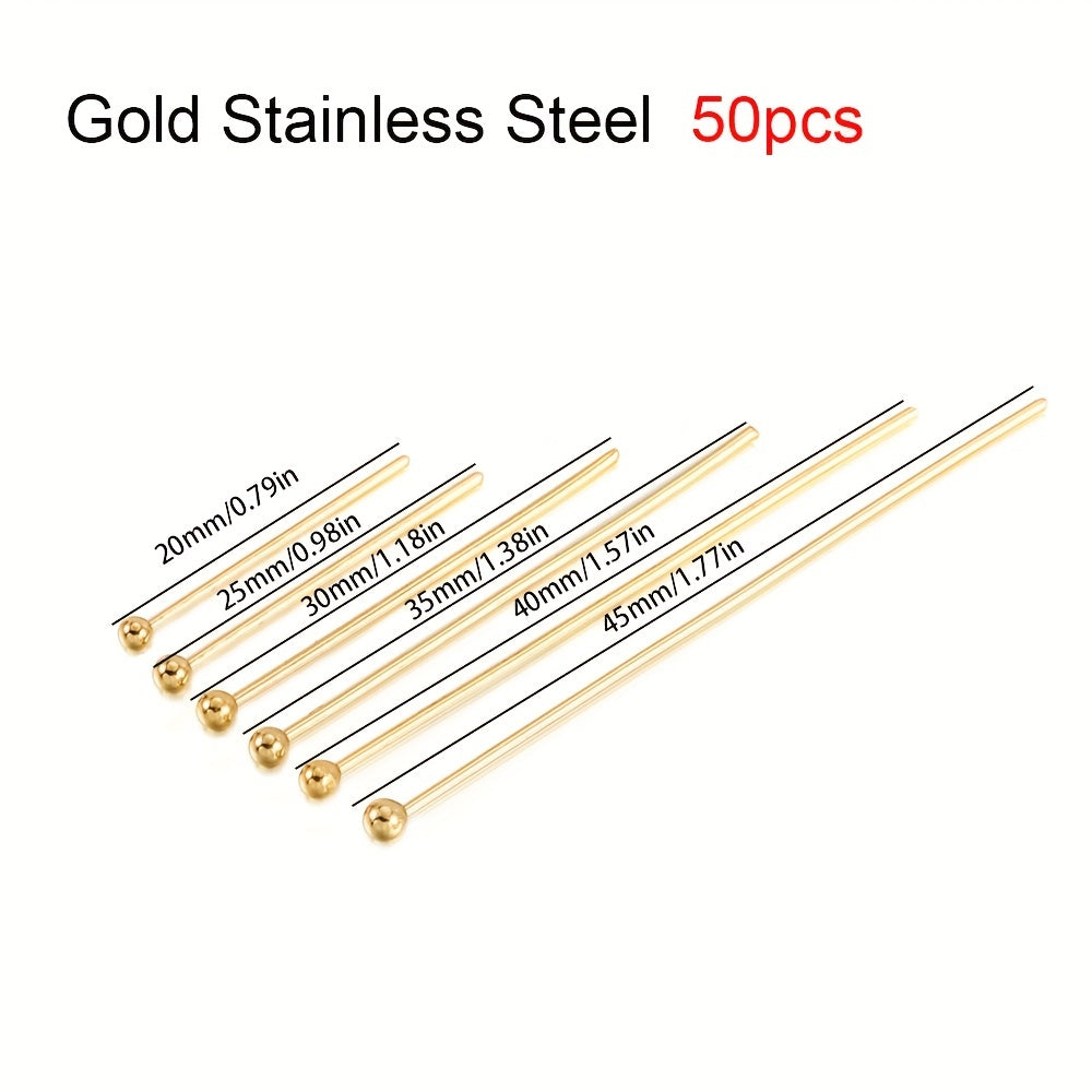 Get this set of 50 stainless steel ball head pins in various sizes to create stunning jewelry pieces. Perfect for crafting earrings and other accessories.