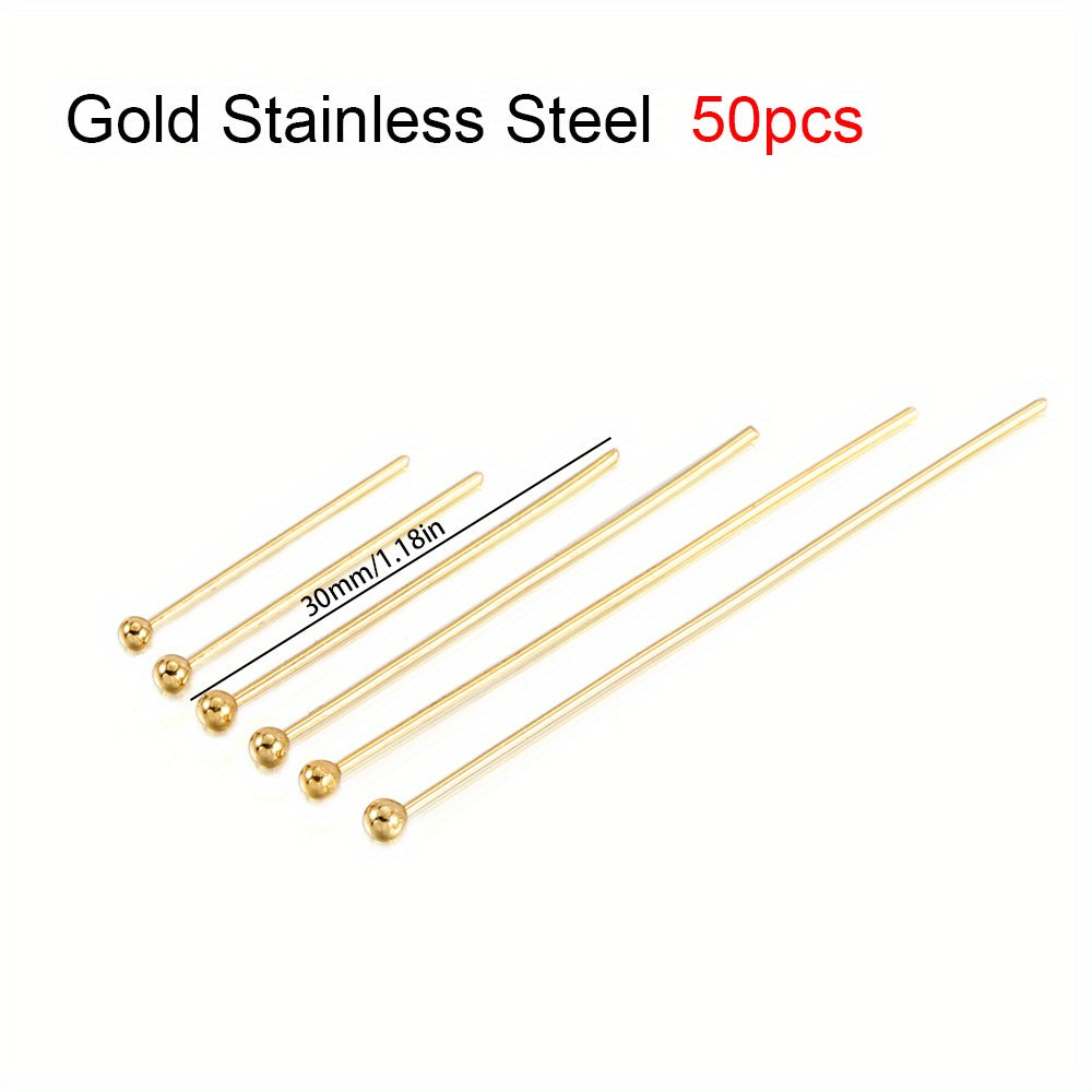 50pcs Stainless Steel Ball Head Pins Needles for Beads Earring Jewelry Findings