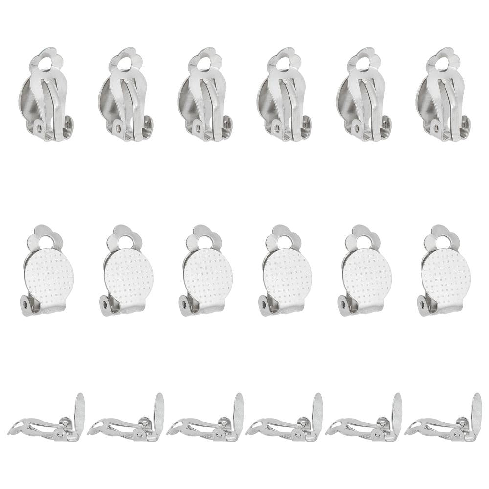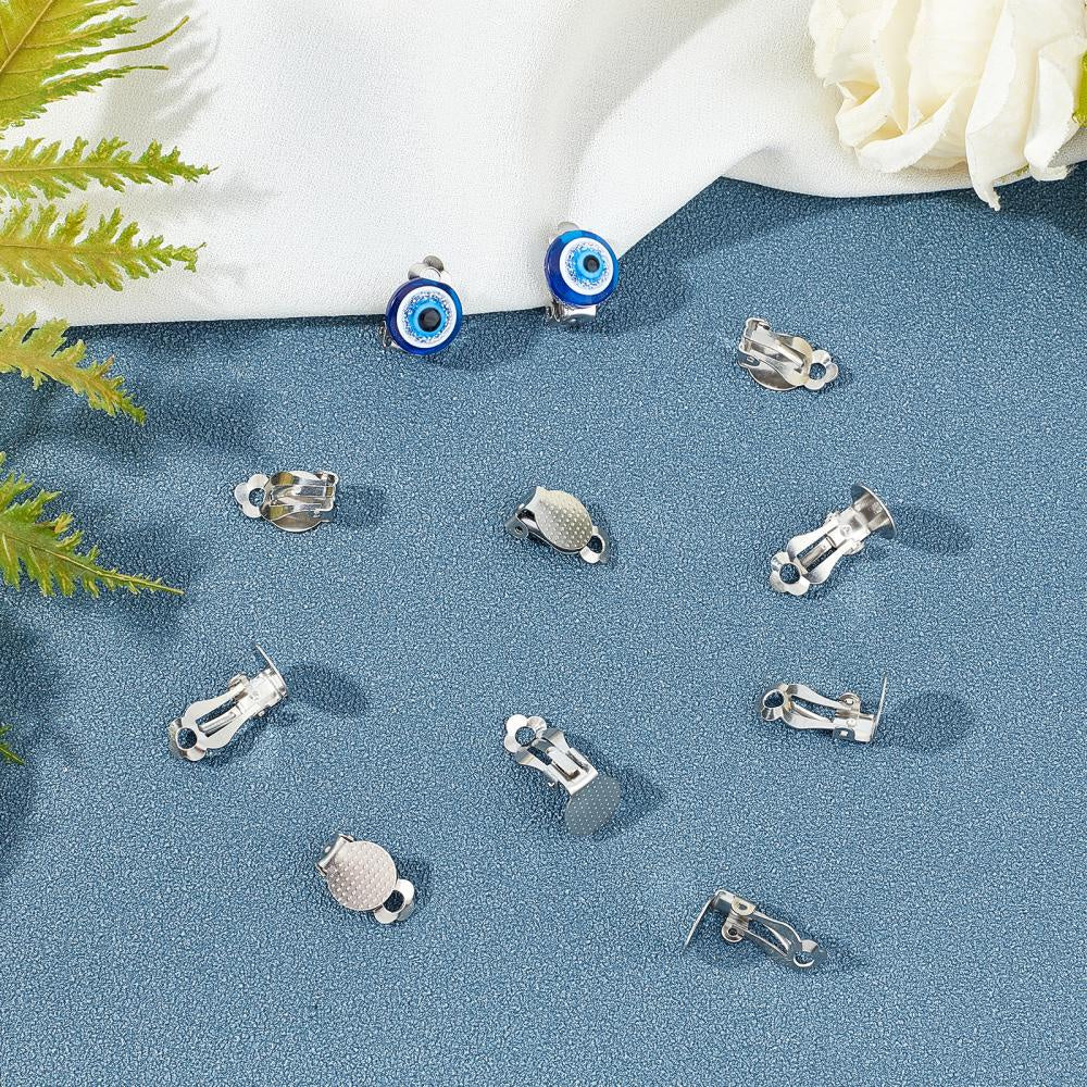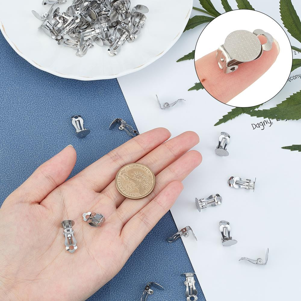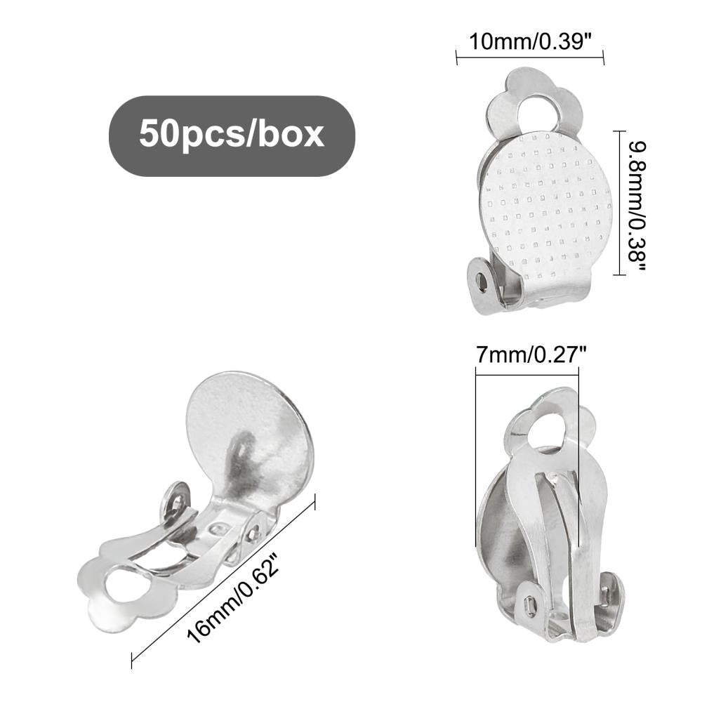 This pack includes 50 pieces of stainless steel clip-on earring findings with flat round ear clips and stainless steel tray. The tray measures 9.8mm in size.
