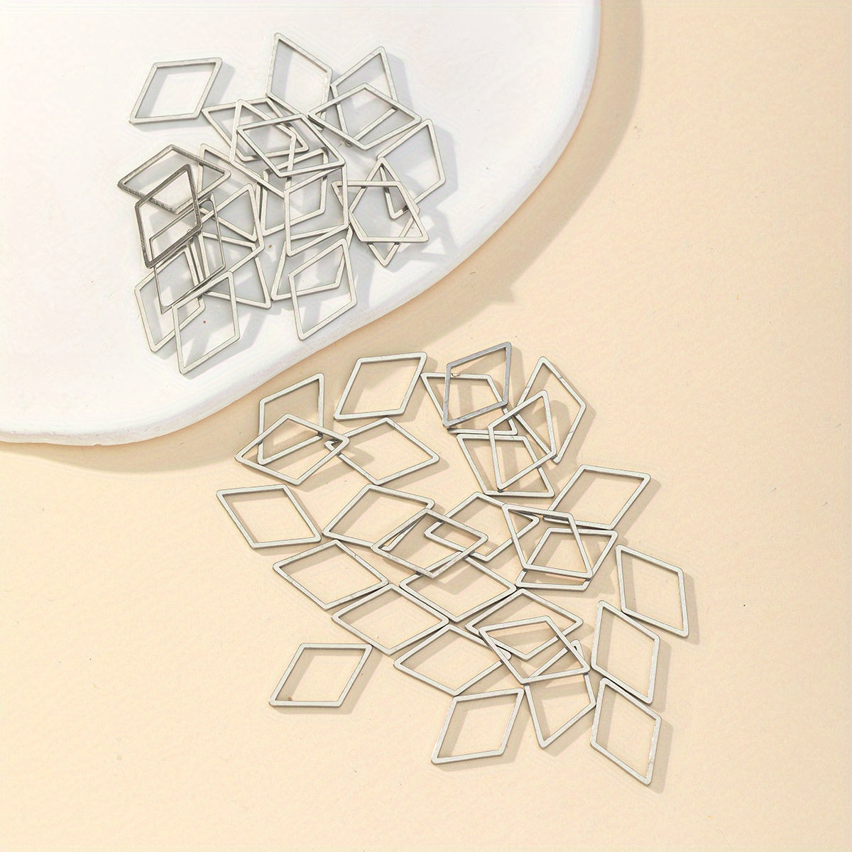 This set includes 50 stainless steel frame pendants in various shapes like rectangular, love heart, moon, pentagram, and water drop. Ideal for creating your own unique jewelry pieces.