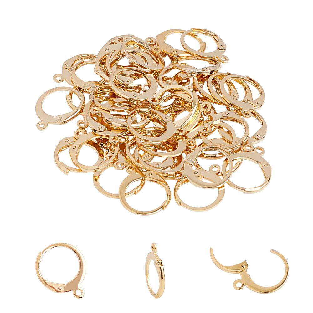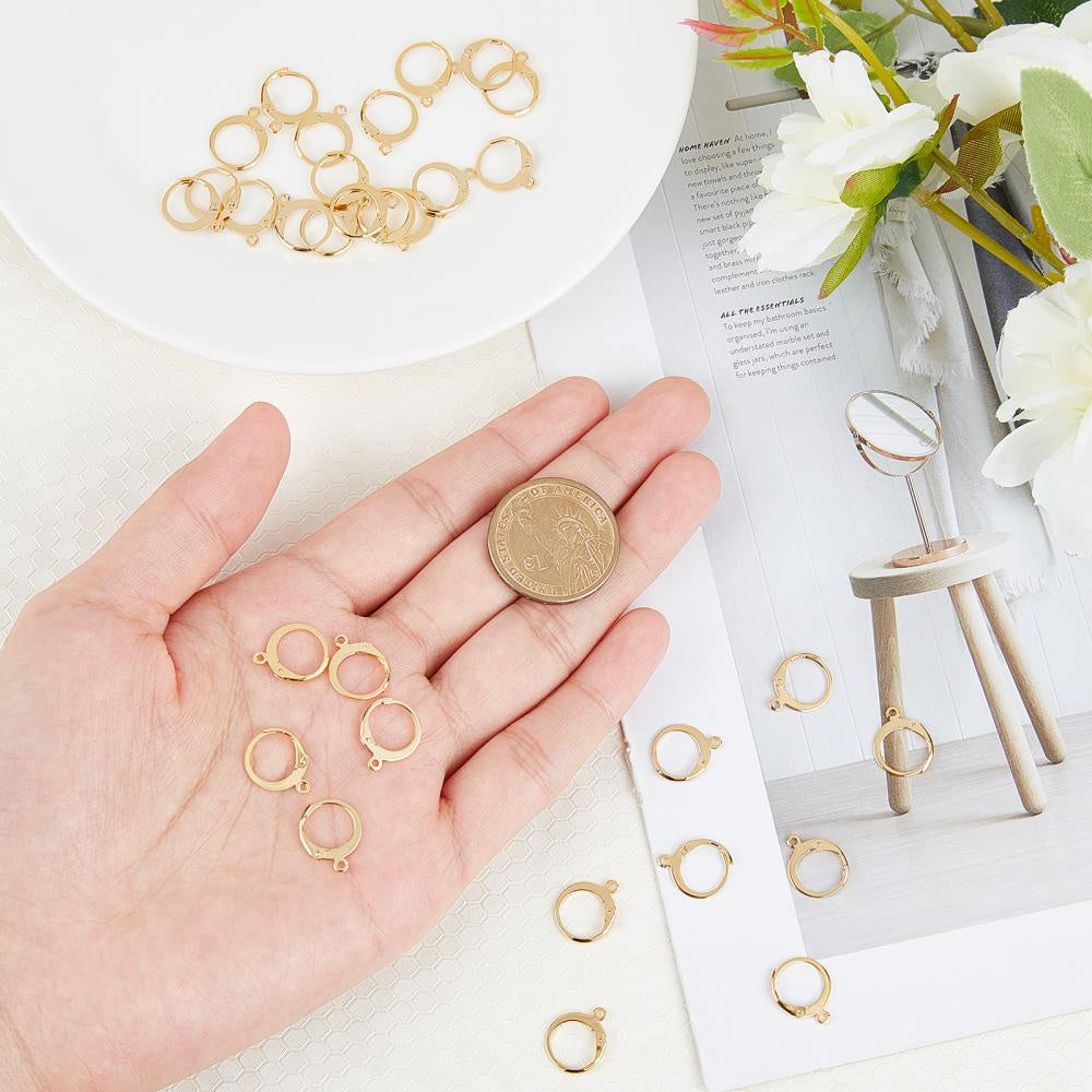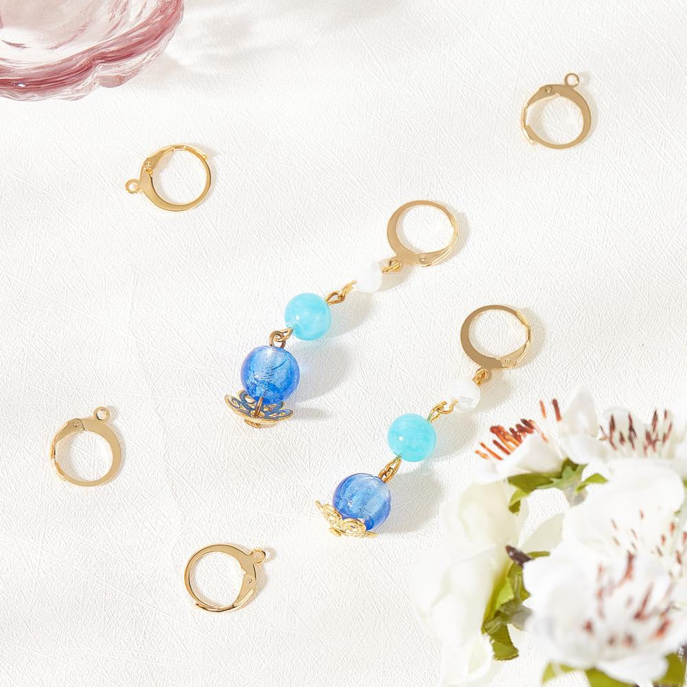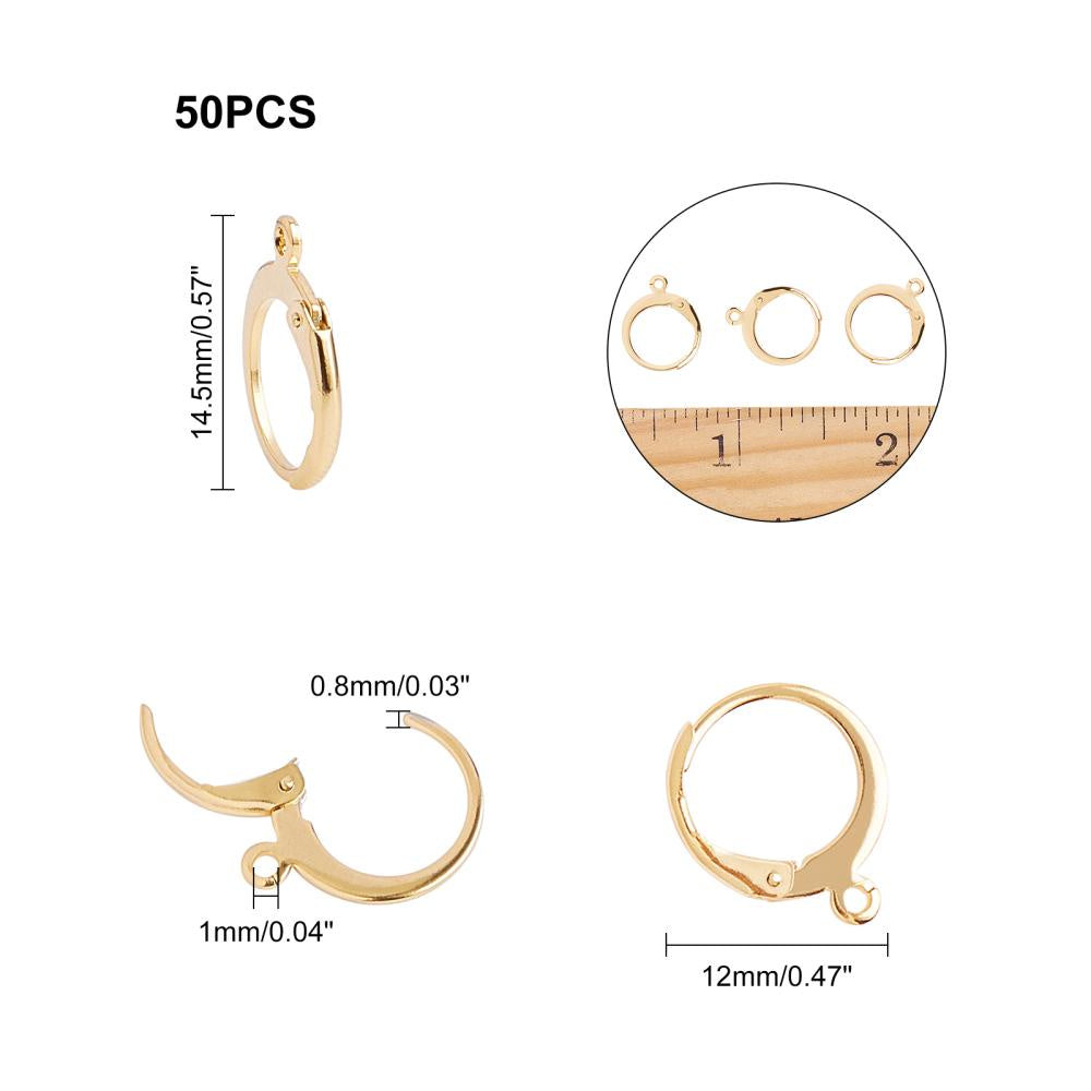 This set includes 50 stainless steel leverback earrings with golden loop hoops, ideal for DIY jewelry making projects. The leverback design ensures secure and easy wear.