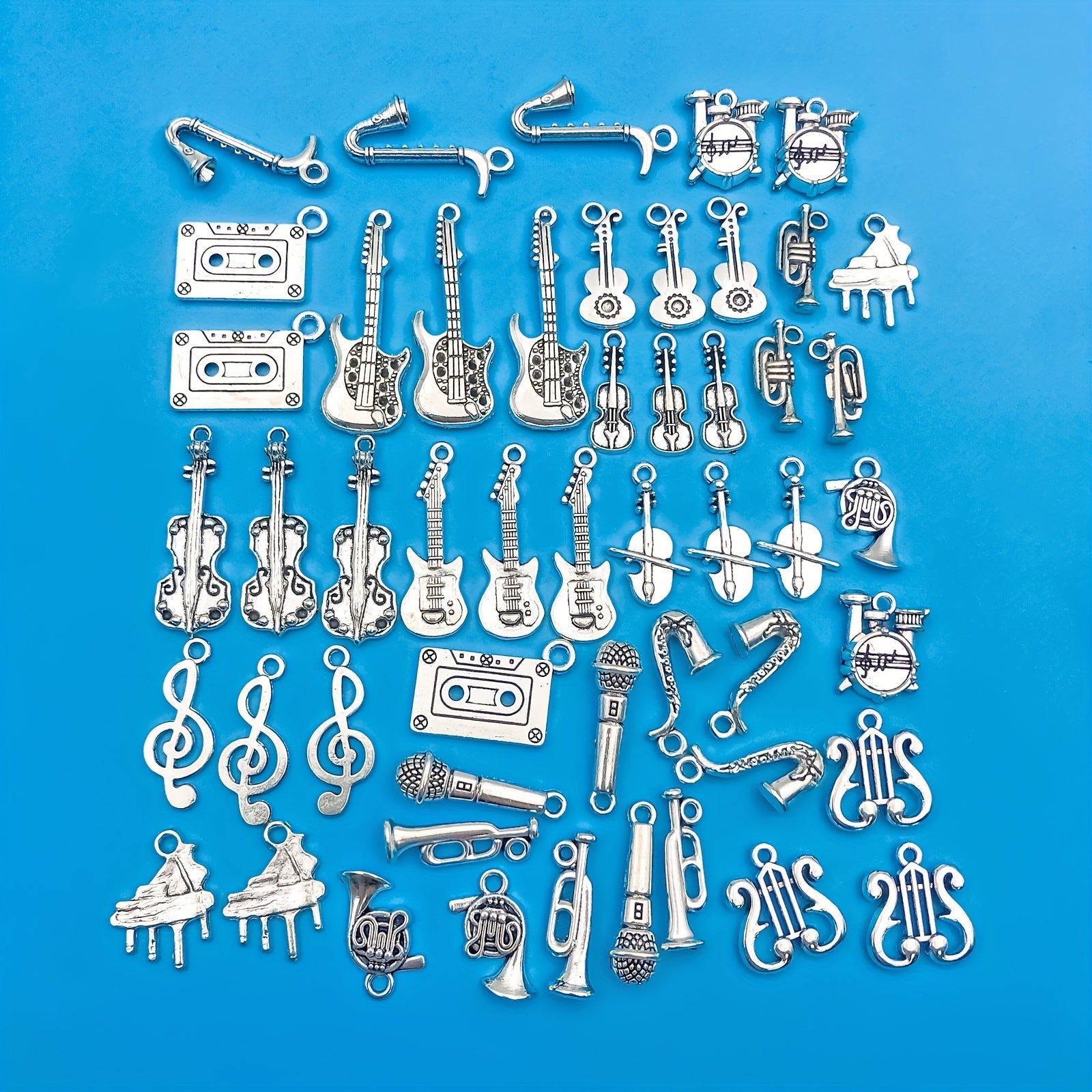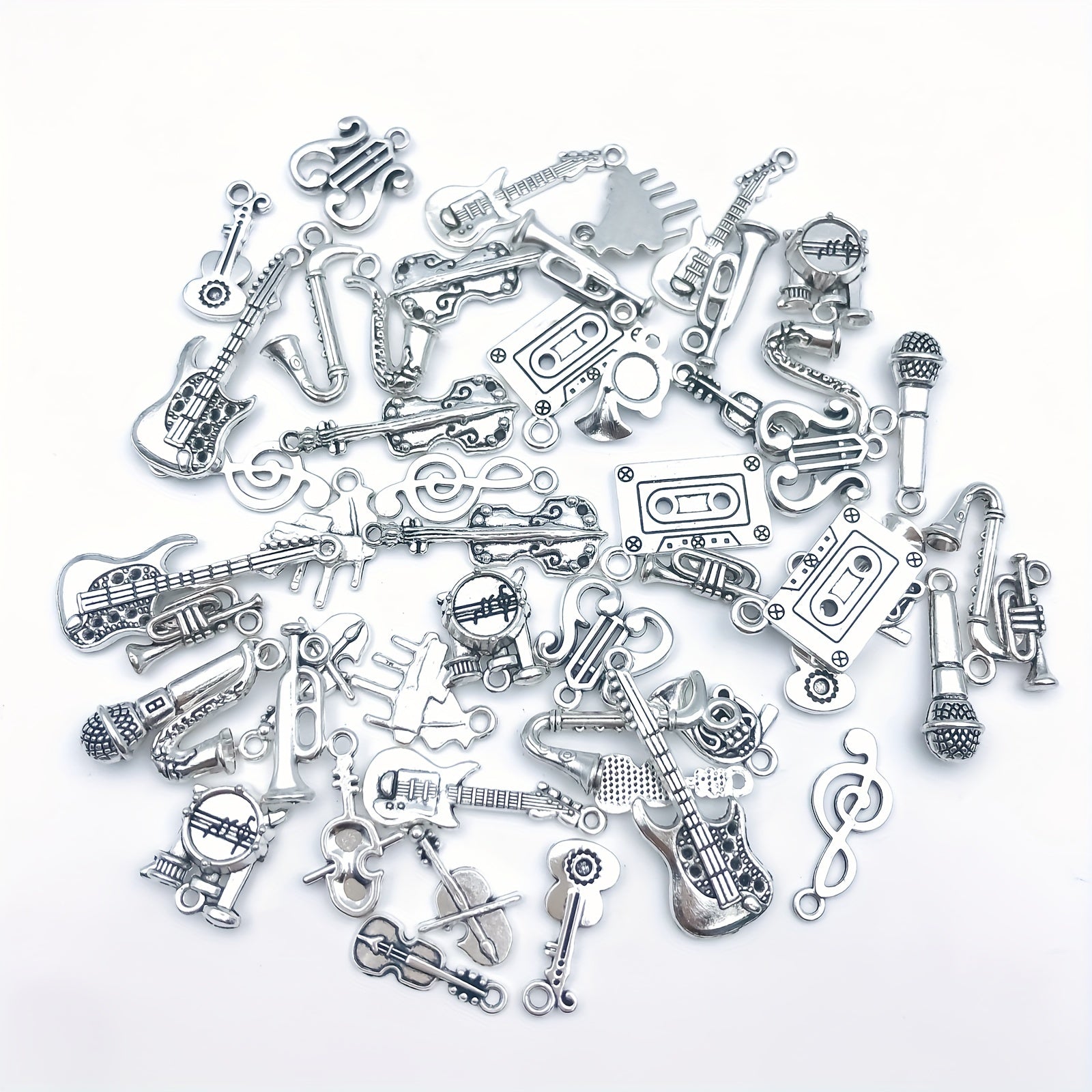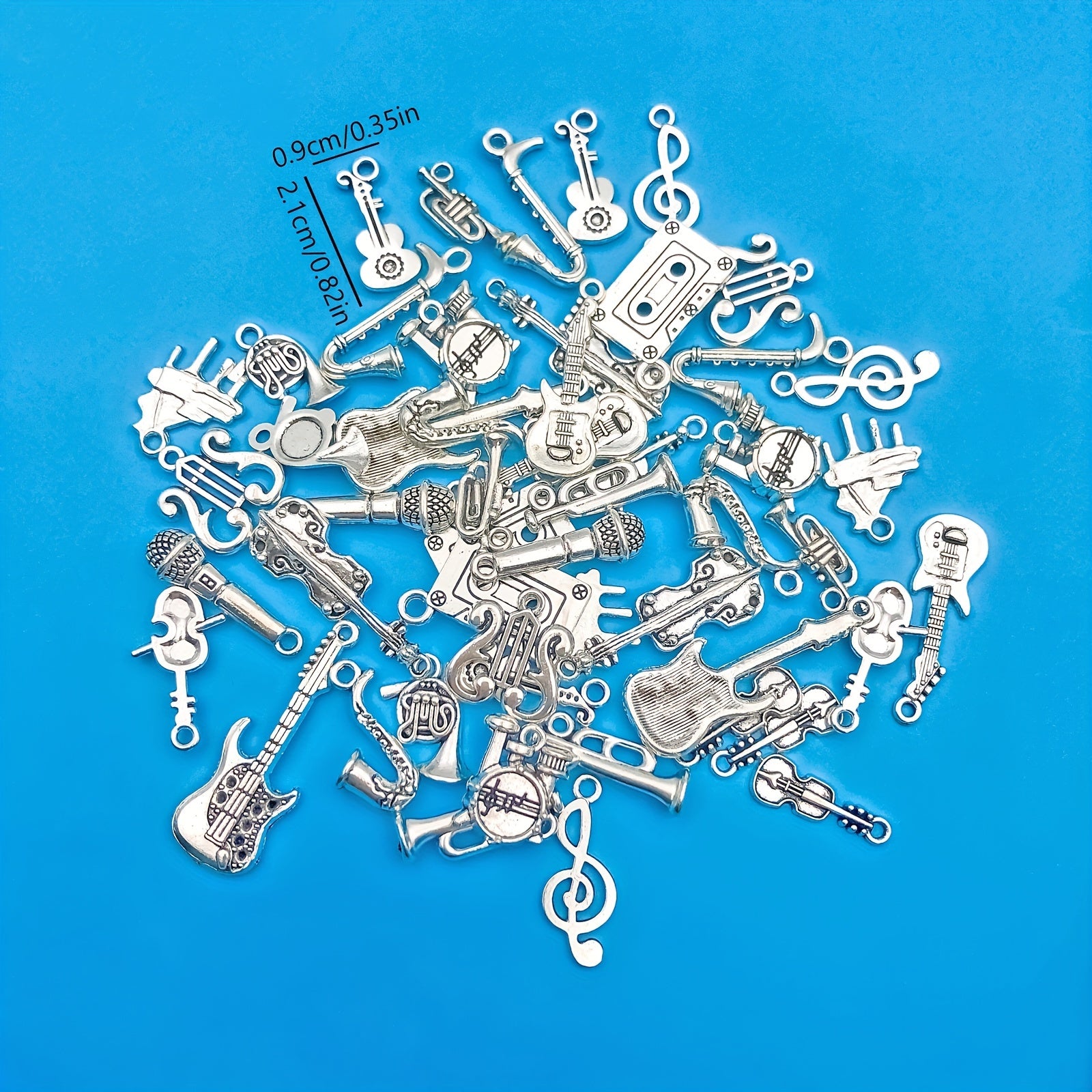 Create beautiful jewelry with this set of 51 zinc alloy antique silver musical instrument note shaped charms. Perfect for necklaces, bracelets, earrings, and more.