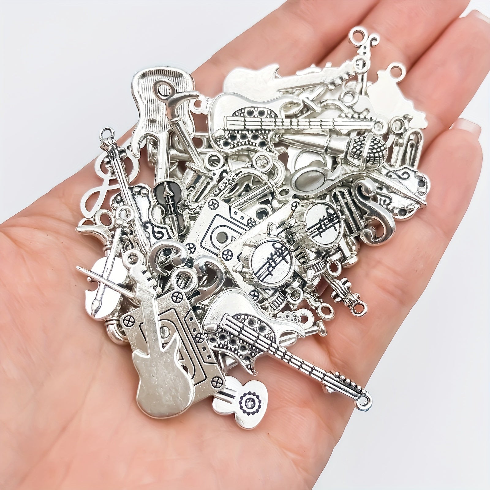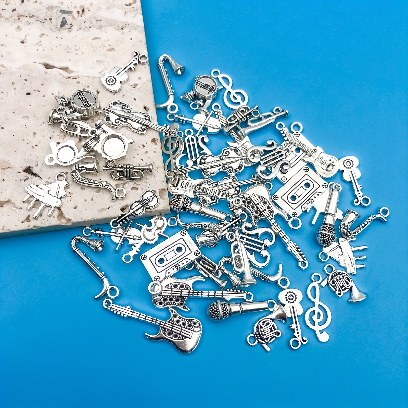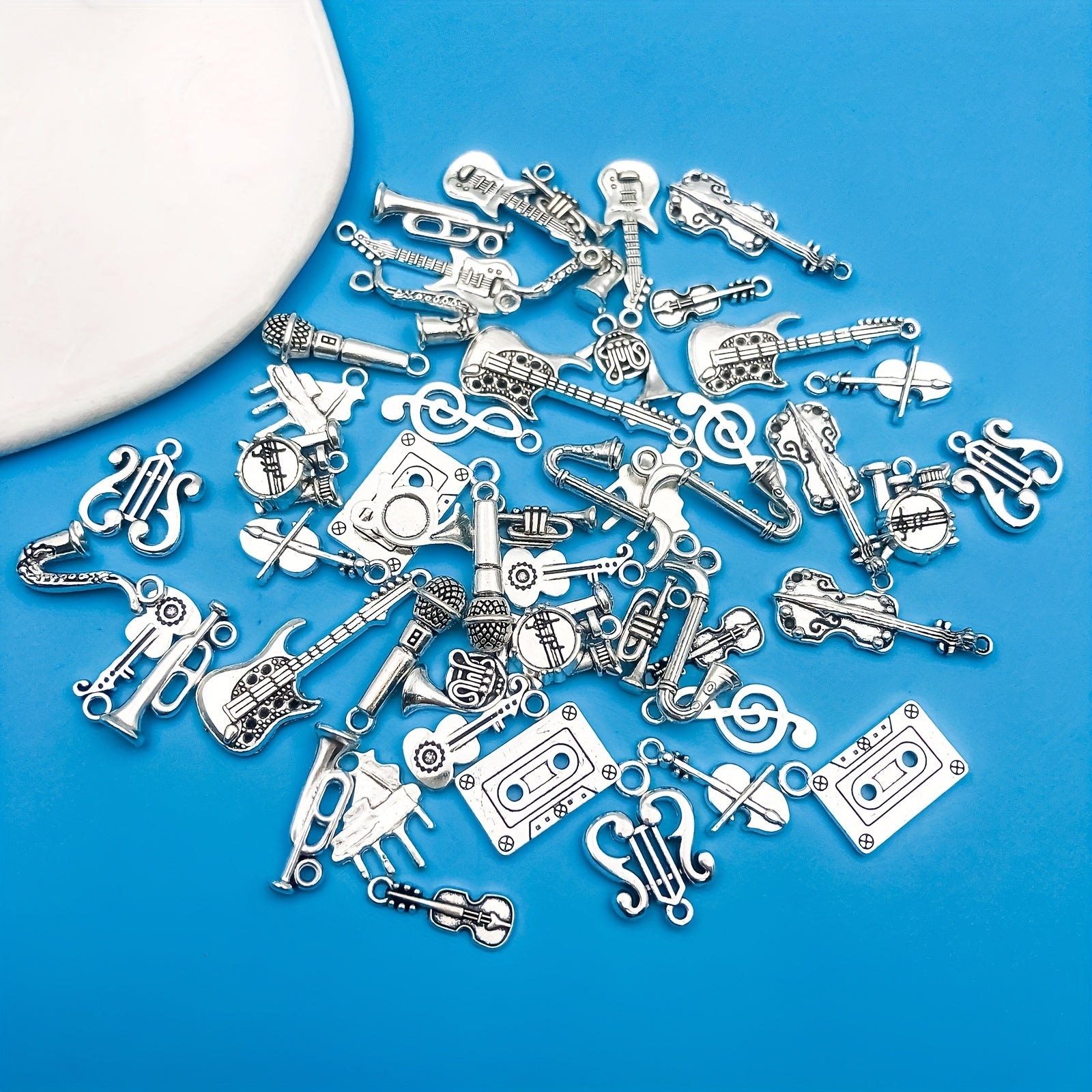 Create beautiful jewelry with this set of 51 zinc alloy antique silver musical instrument note shaped charms. Perfect for necklaces, bracelets, earrings, and more.