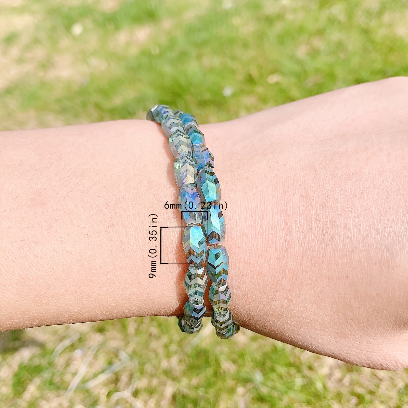 This pack contains 55pcs of AB Austrian crystal beads in 6mm and 9mm sizes, perfect for creating your own bracelets. The faceted glass beads add a touch of sparkle to your DIY jewelry projects.