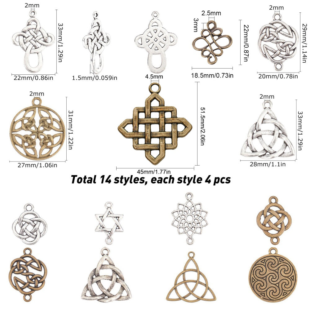 56pcs Assorted Knot Alloy Pendants & Links Connectors for DIY Jewelry Making