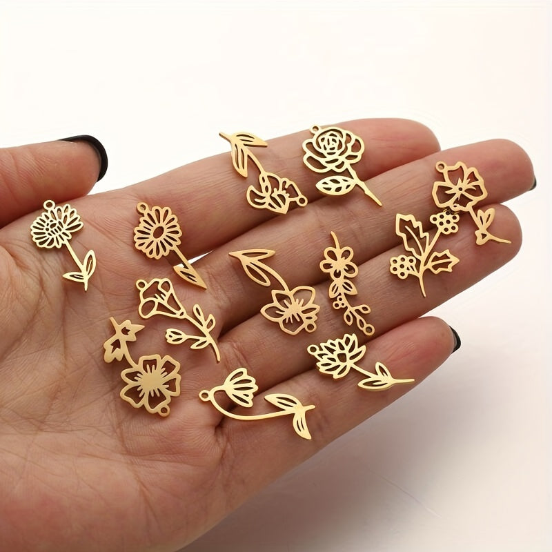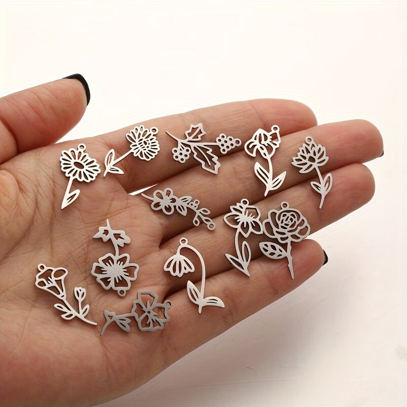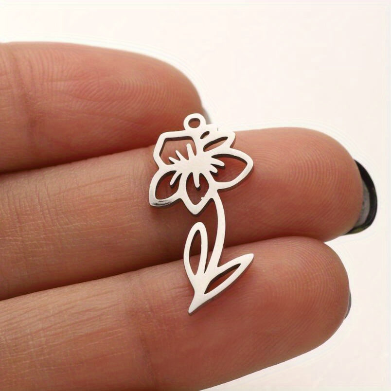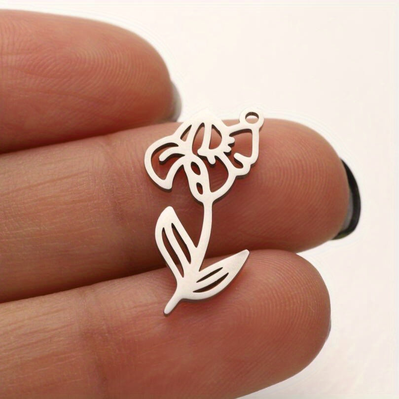 Create stunning jewelry with these 5pcs stainless steel flower DIY charms. Perfect for crafting unique pieces for each month of the year.