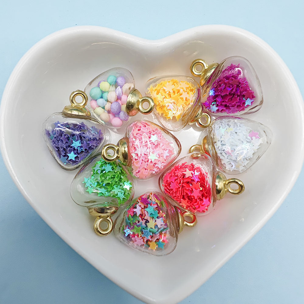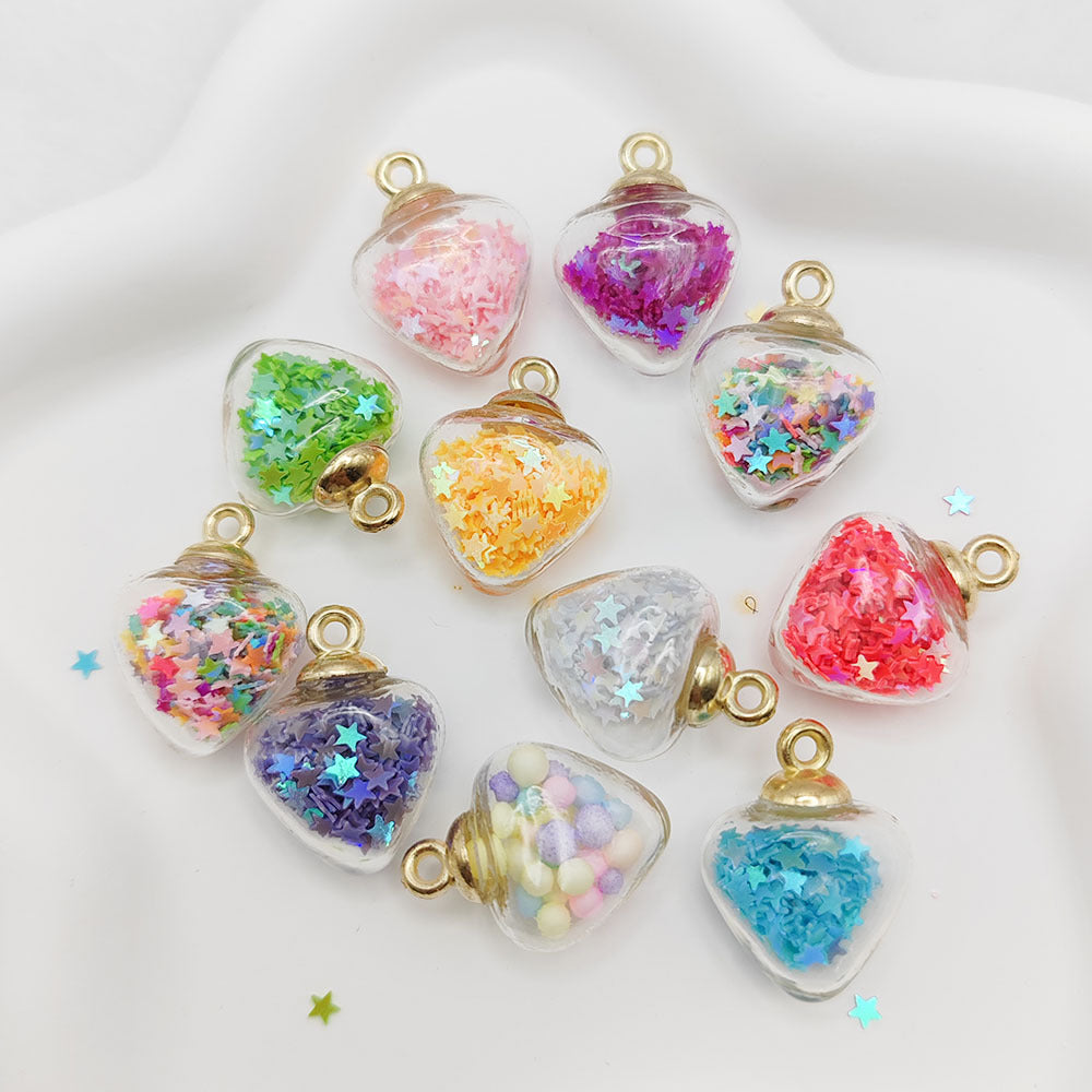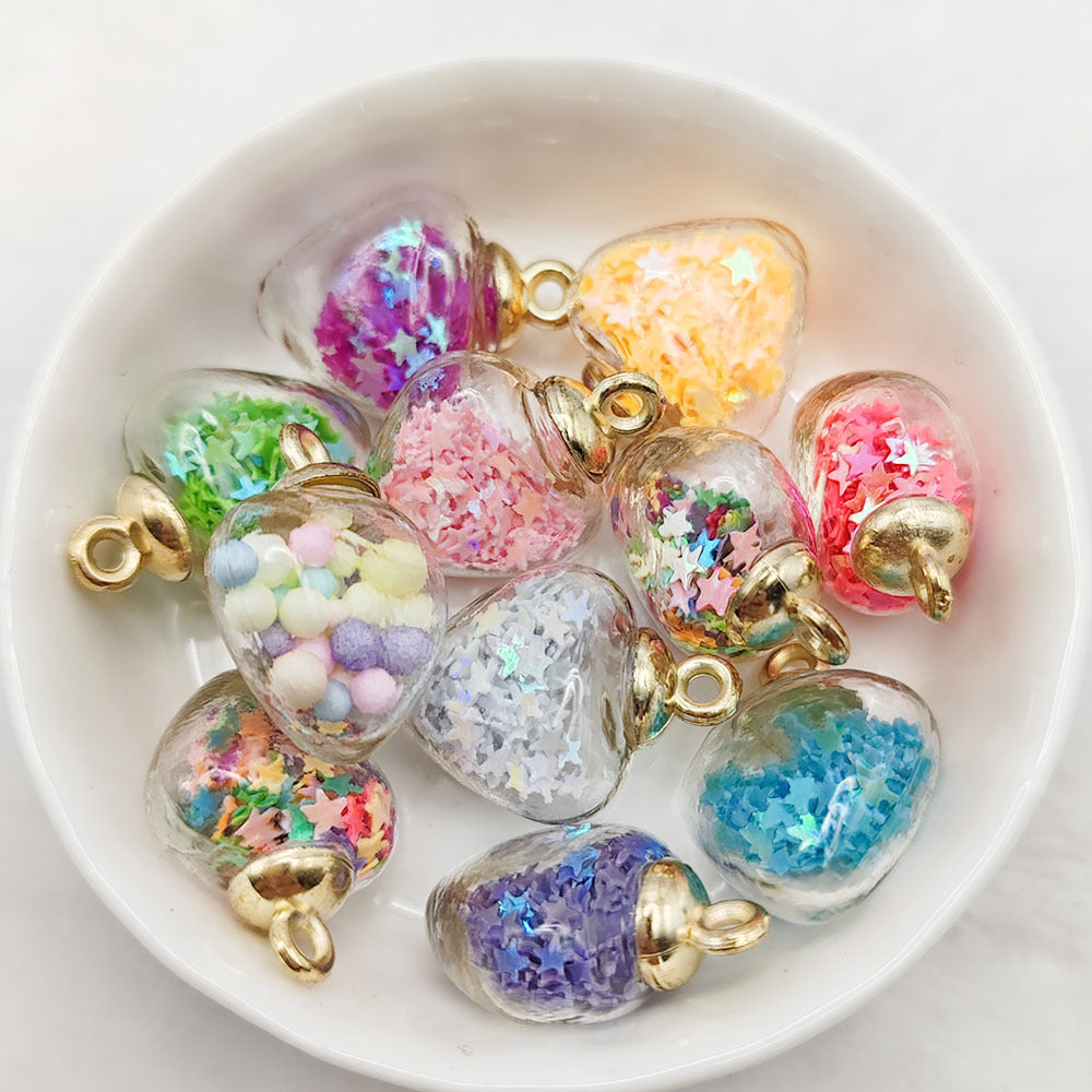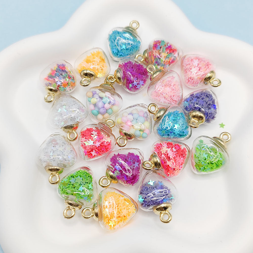 Add a touch of charm to your jewelry with these heart-shaped glass ball pendants. Use them to create unique bracelets and necklaces with quicksand sequins. Perfect for DIY projects.