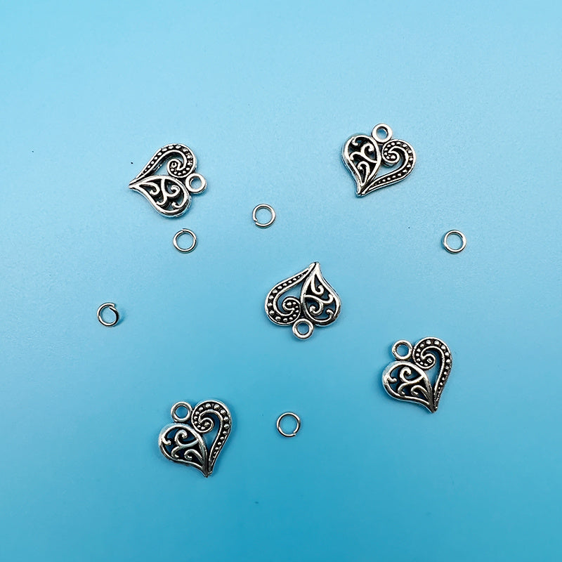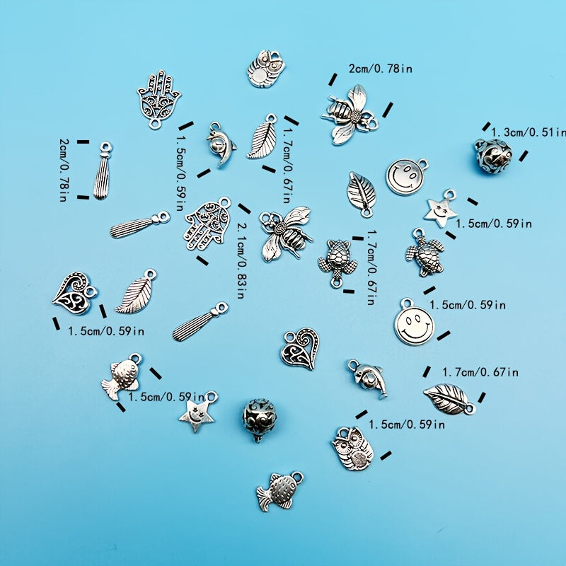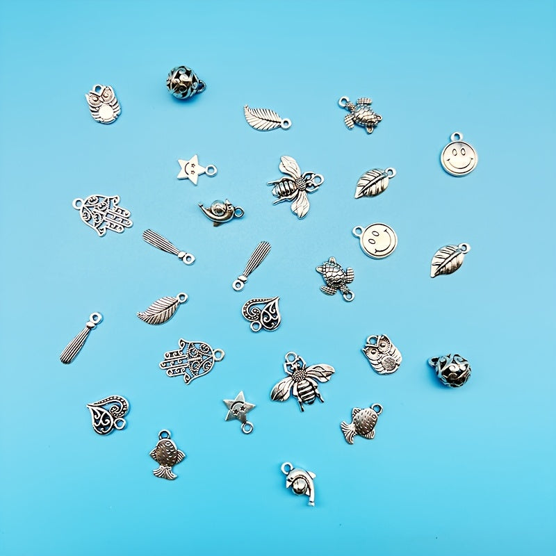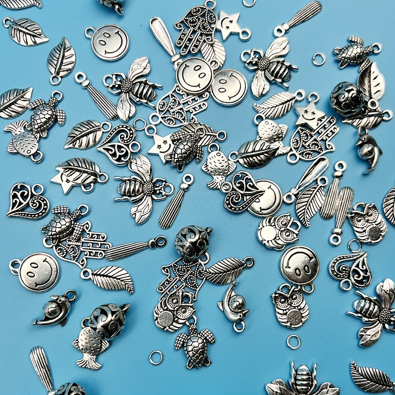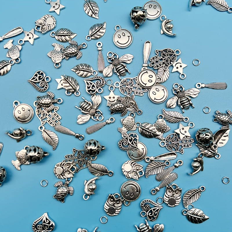 Collection of retro alloy ancient silver charms for creating bangles, necklaces, and earrings.