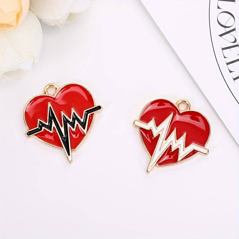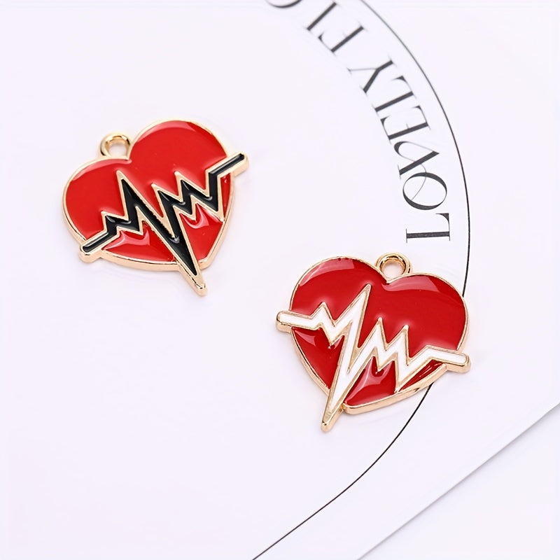 This set includes 5pcs of 21x20mm heart electrocardiogram alloy accessories, perfect for DIY jewelry making. These decorations can be used for necklaces, earrings, keychains, and more.