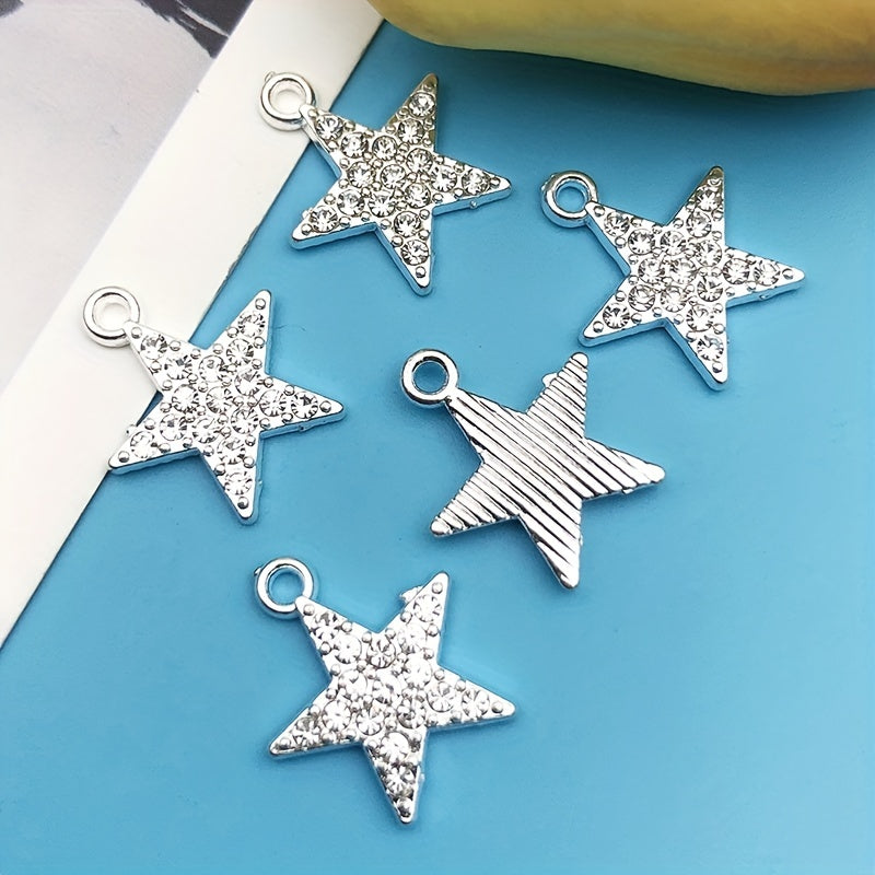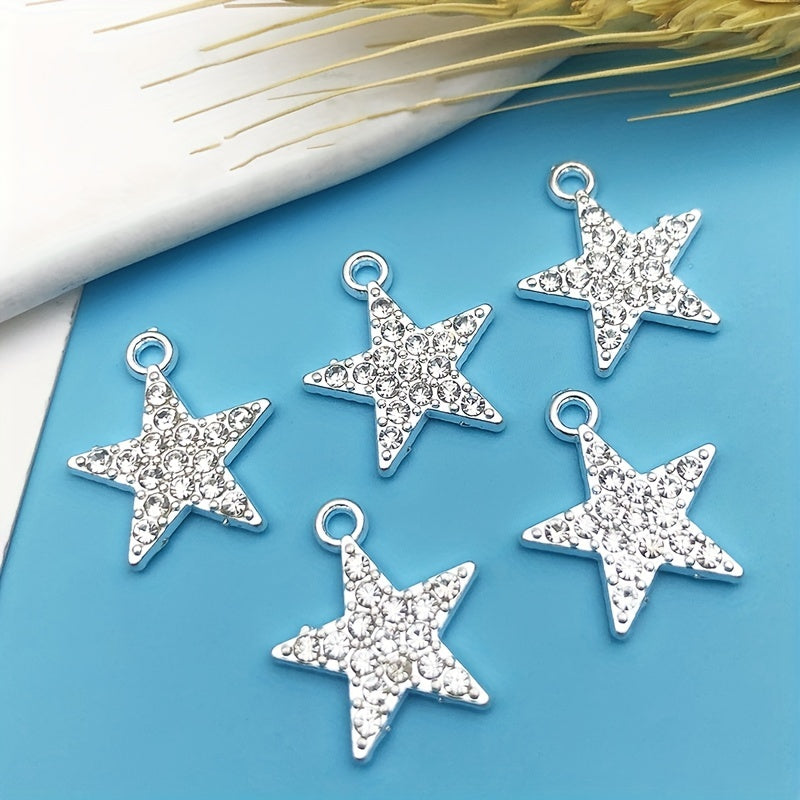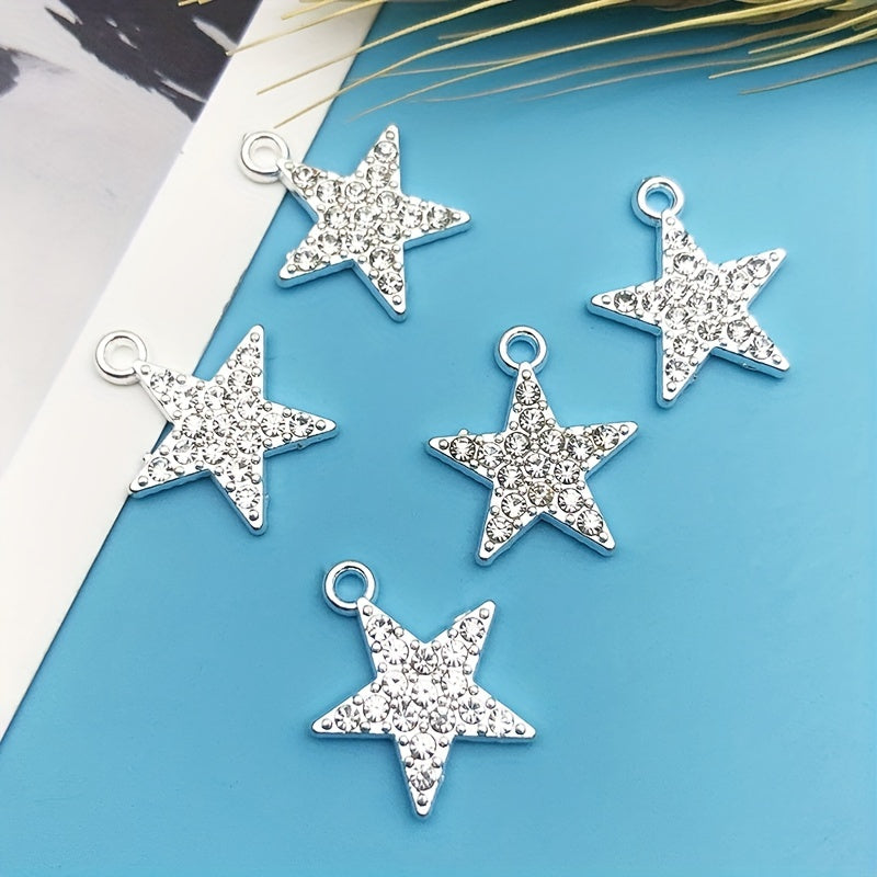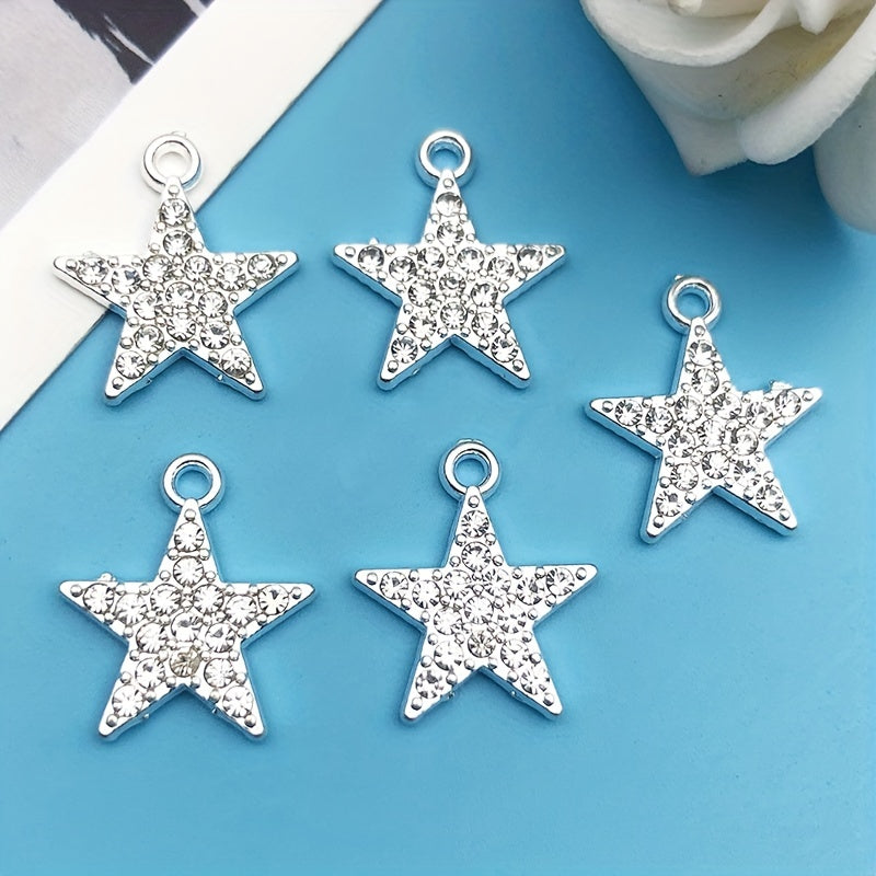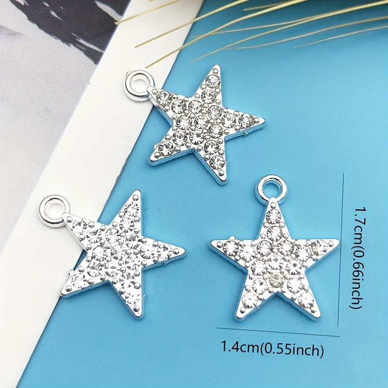 Enhance your jewelry projects with these 3D rhinestone silver star charms. Perfect for bracelets, necklaces, and earrings, these charms add a touch of sparkle to your creations.