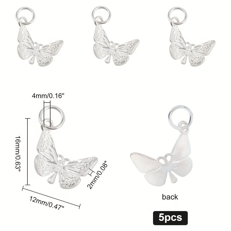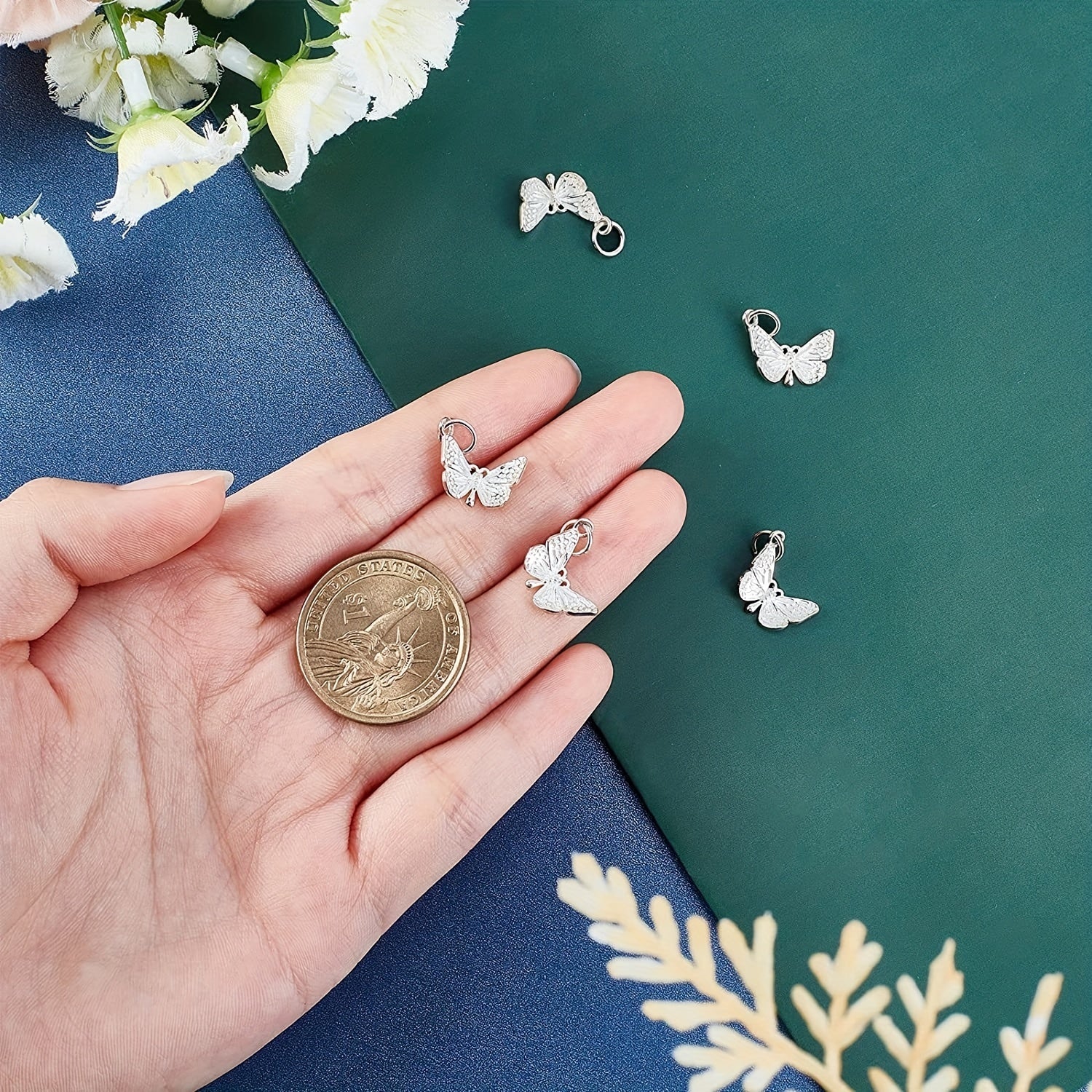 Add a touch of elegance to your jewelry with these silver butterfly charms. Perfect for creating your own earrings, bracelets, anklets, necklaces, or as bag accessories.