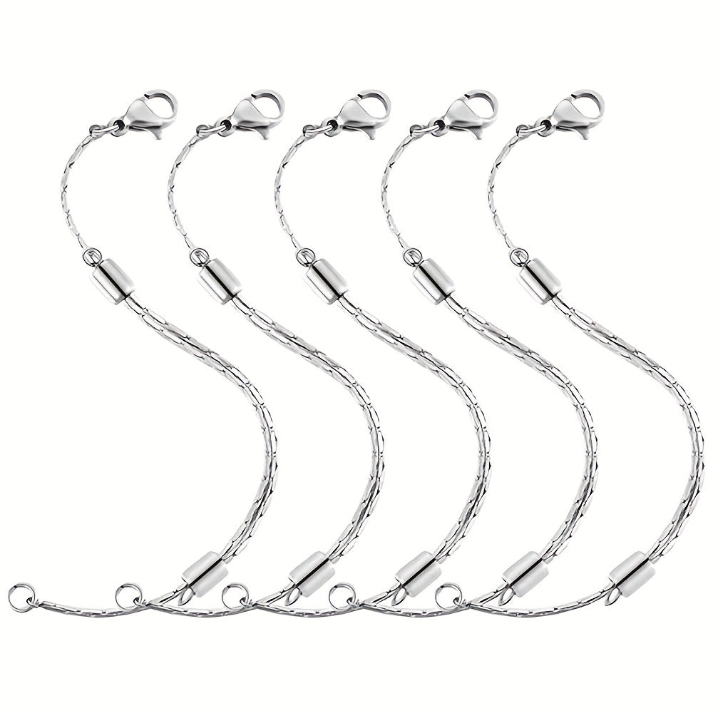 5pcs Adjustable Necklace Extender Chain Silvery Stainless Steel Lobster Clasp