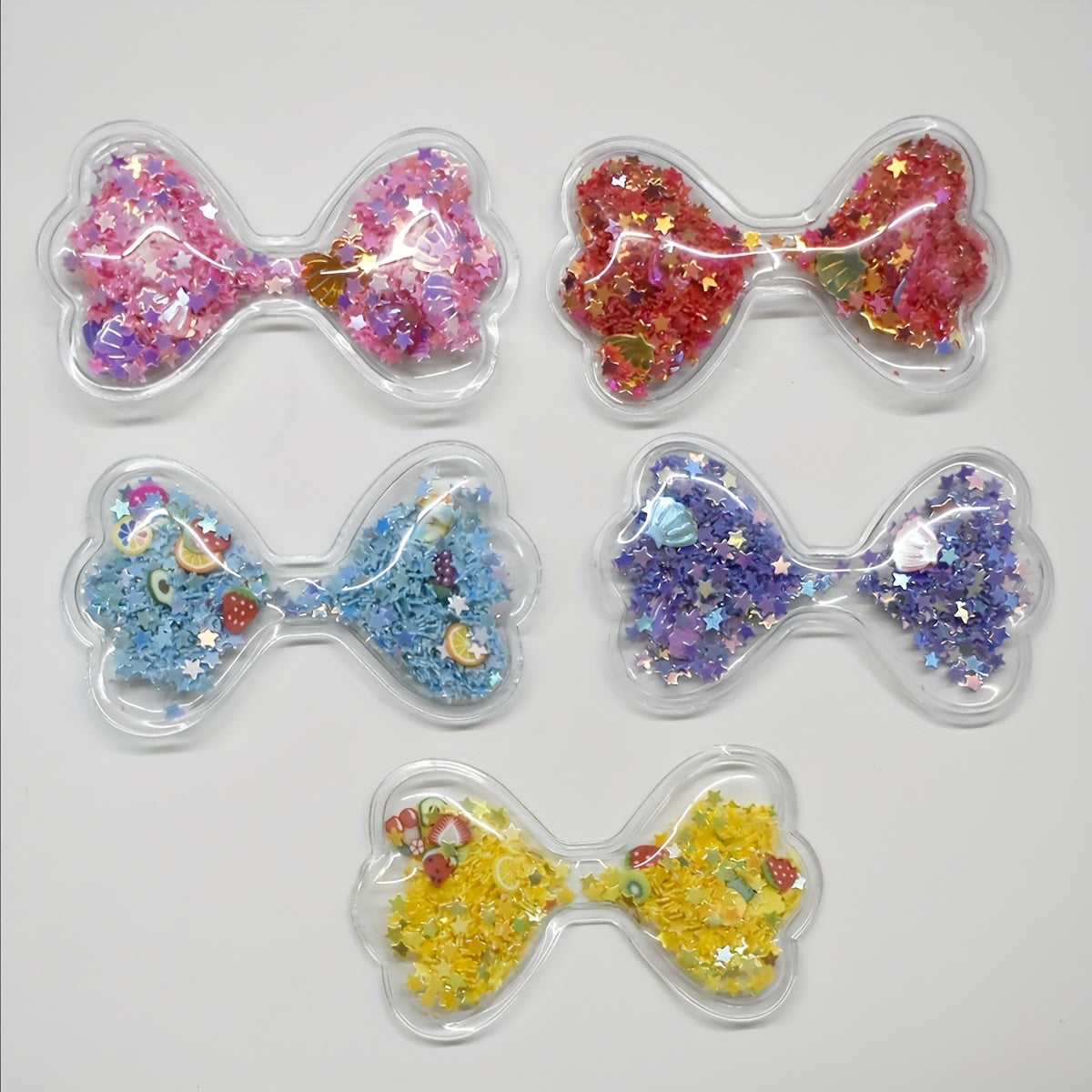 This set includes 5 transparent bow pendants that can be used for making barrettes, hair ornaments, and jewelry. A perfect material for arts and crafts projects. Great for creating unique gifts.