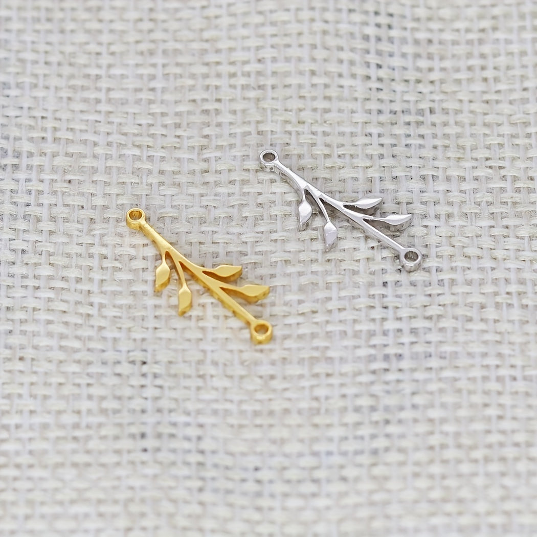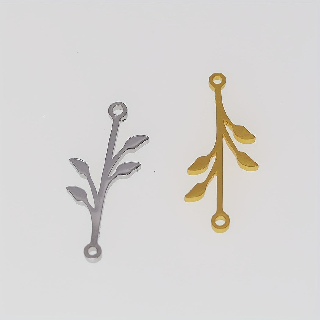 Enhance your jewelry crafts with these 5pcs stainless steel charm pendants featuring a branch and leaf design. Ideal for necklaces, bracelets, and other creative projects.