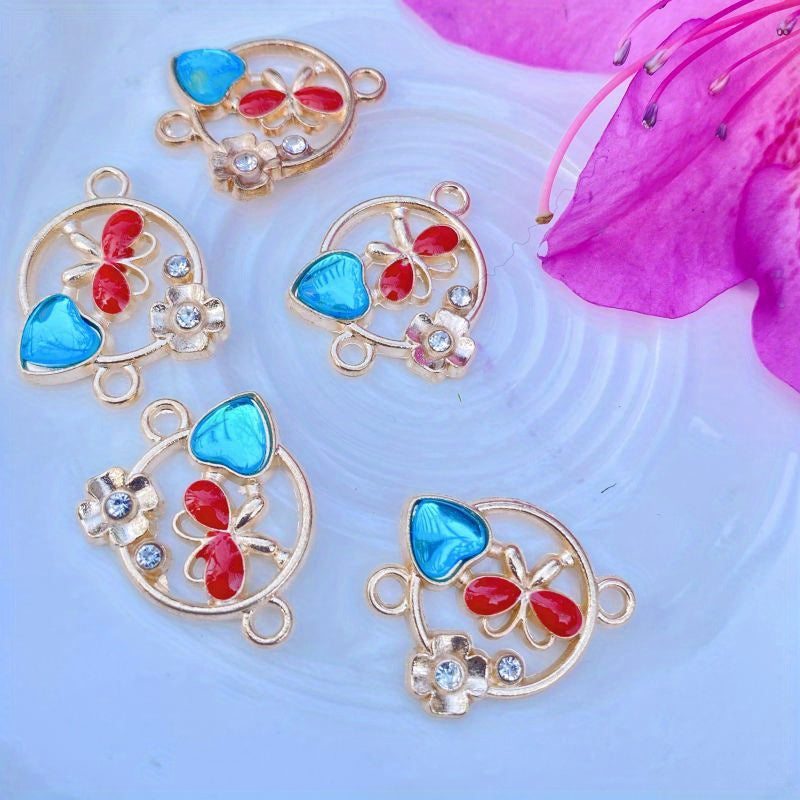 Enhance your jewelry designs with these alloy butterfly, flower, and love pendants. Perfect for bracelets, necklaces, and other DIY projects.