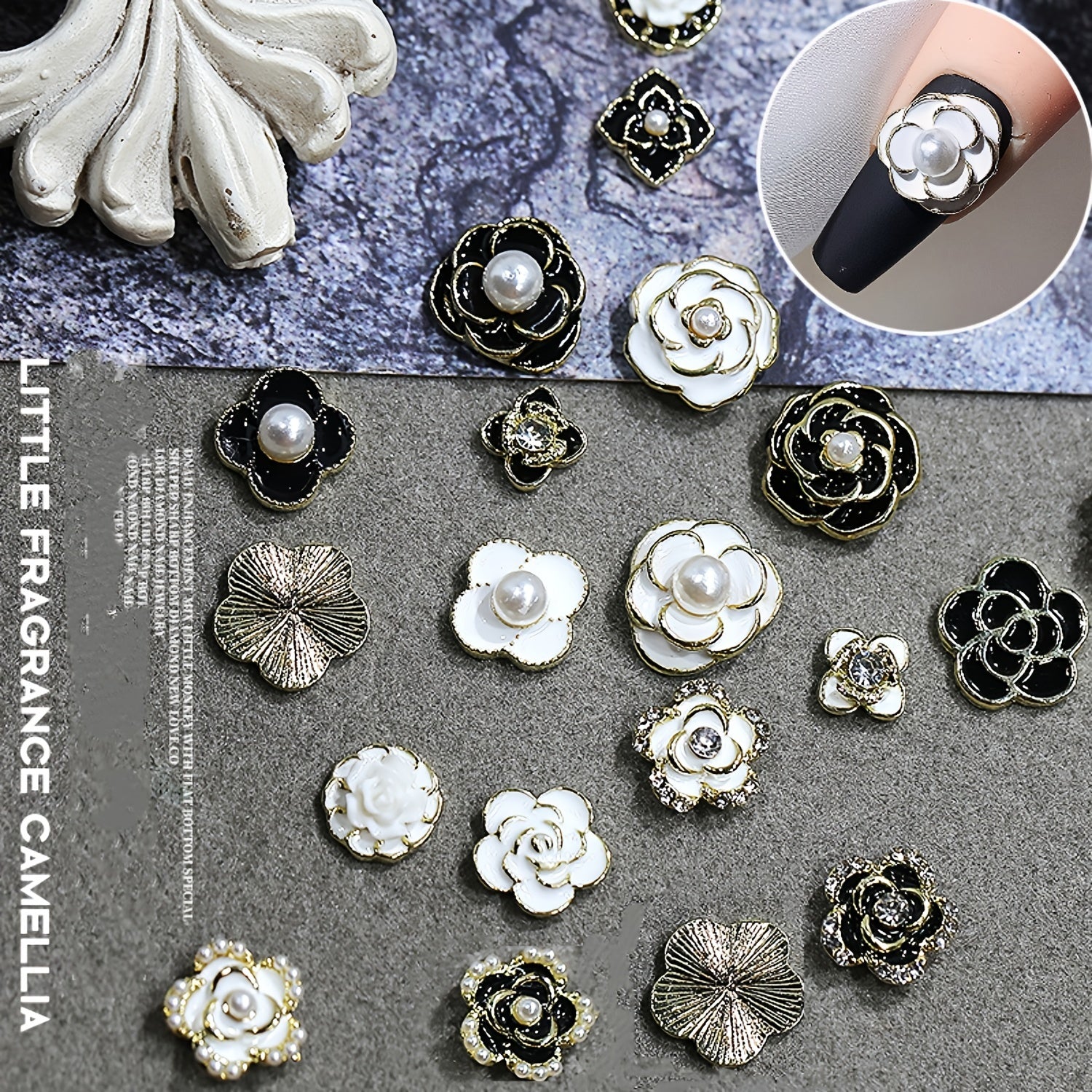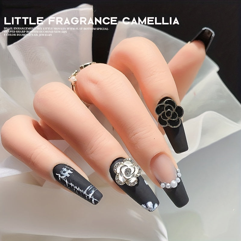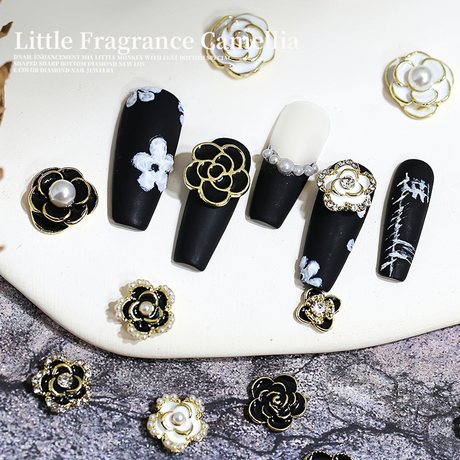 Enhance your nails with these charming camellia nail art charms. Made of alloy and resin, these 3D flowers are adorned with artificial diamonds. Perfect for women who love sweet and delicate nail decorations.