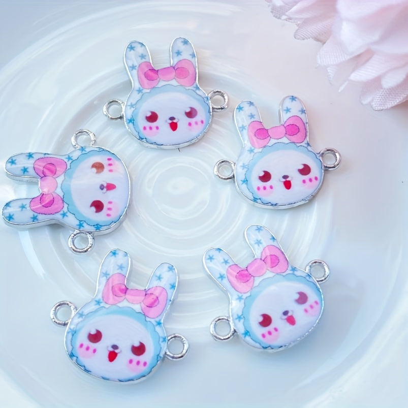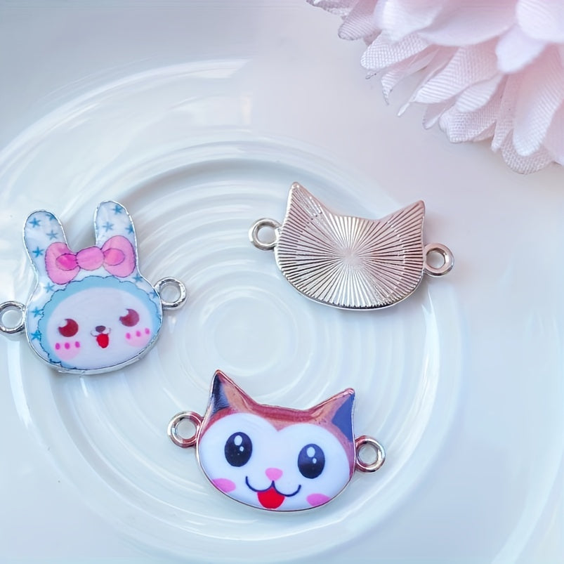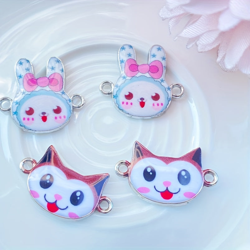 Create adorable jewelry pieces with these cute double hanging alloy connectors featuring cartoon rabbit or puppy patterns. Perfect for DIY jewelry making projects.