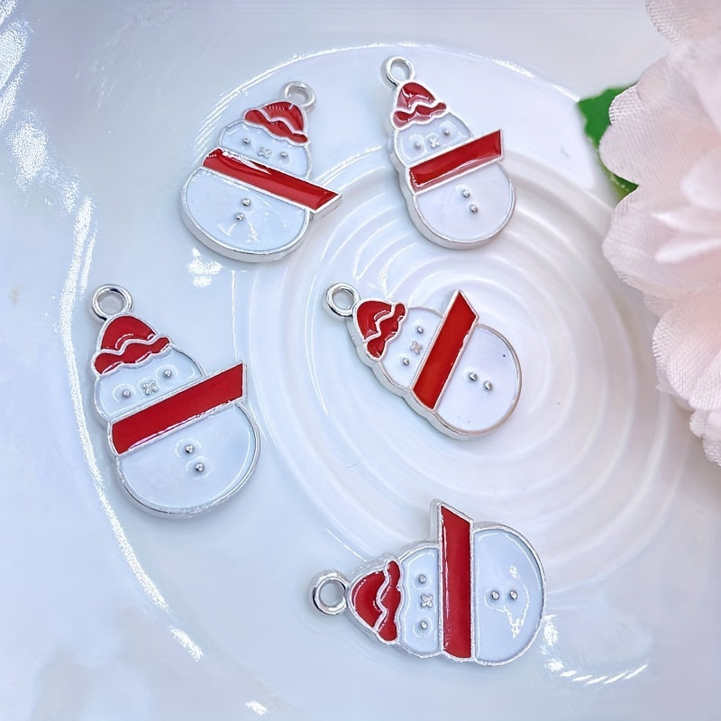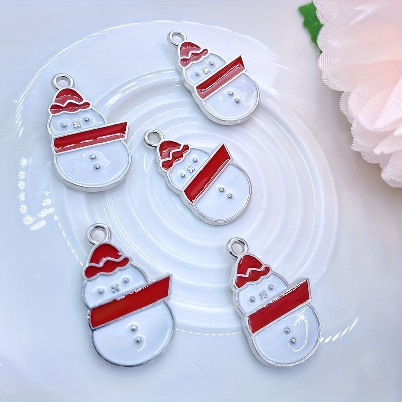 Create festive jewelry with this set of 5 Christmas snowman dripping oil alloy accessories. Perfect for DIY projects.