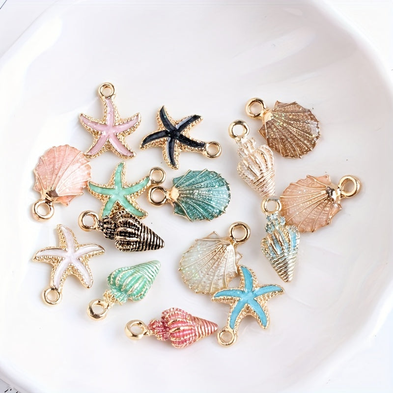 Enhance your jewelry pieces with these 5pcs conch seashells and starfish pendants. Ideal for bracelets, necklaces, anklets, earrings, and more.