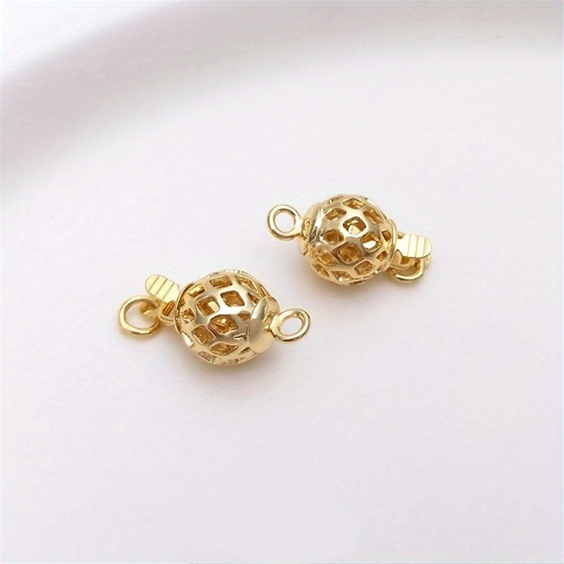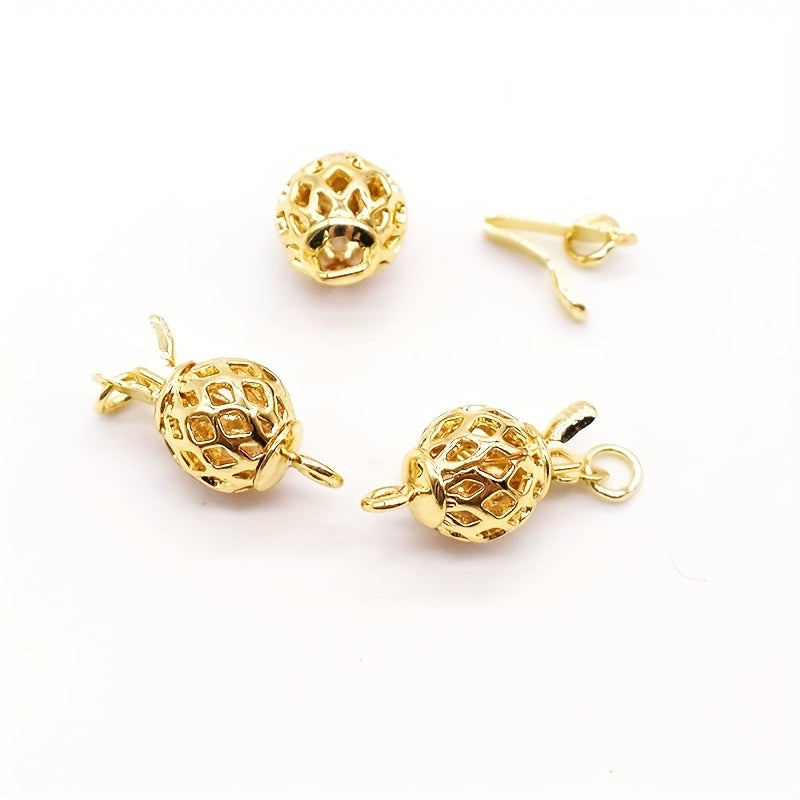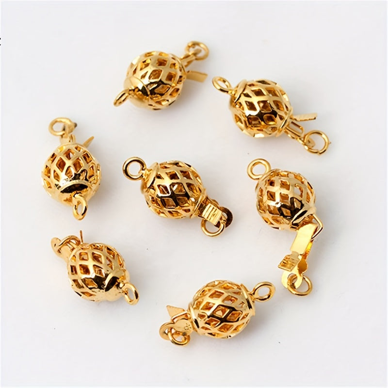 Enhance your jewelry making with these golden, silver, and rose golden hollow copper ball connectors. Perfect for bracelets and necklaces.