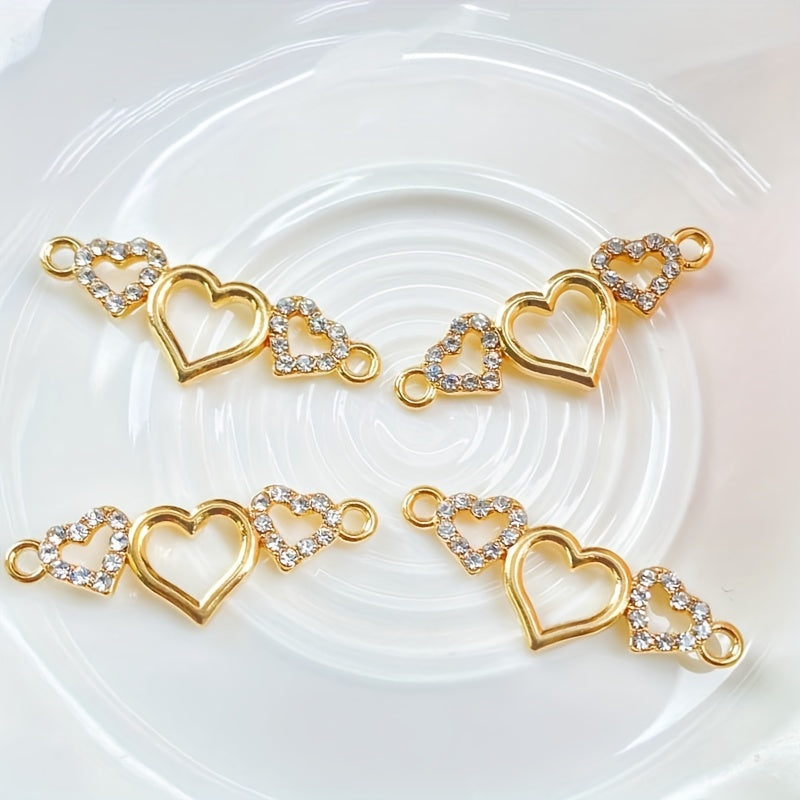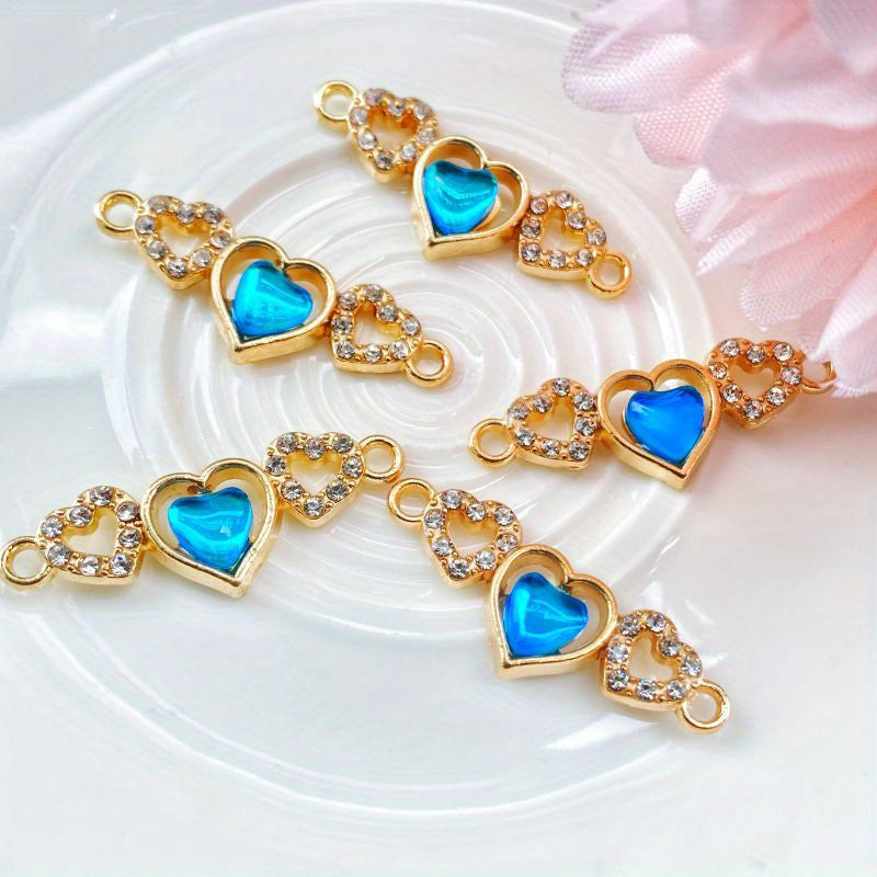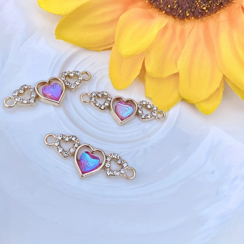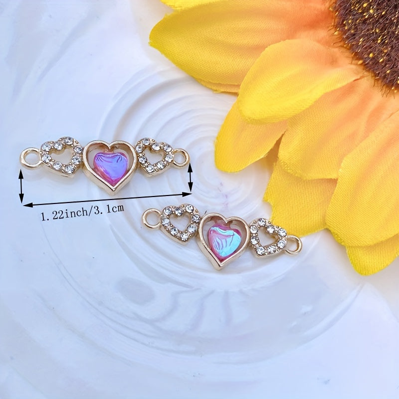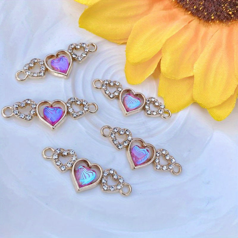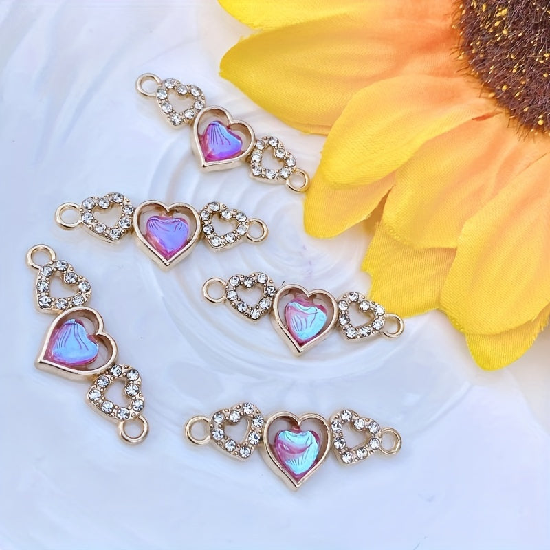 Enhance your DIY jewelry projects with these 5pcs artificial diamond studded heart-shaped pendants. Perfect for creating custom bracelets and necklaces.