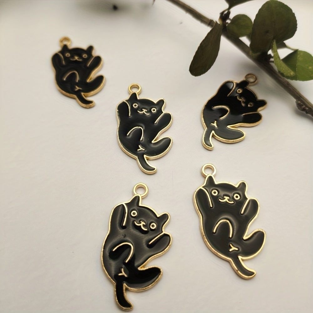 5pcs Falling Cat Enamel Charms for DIY Bracelet Necklace