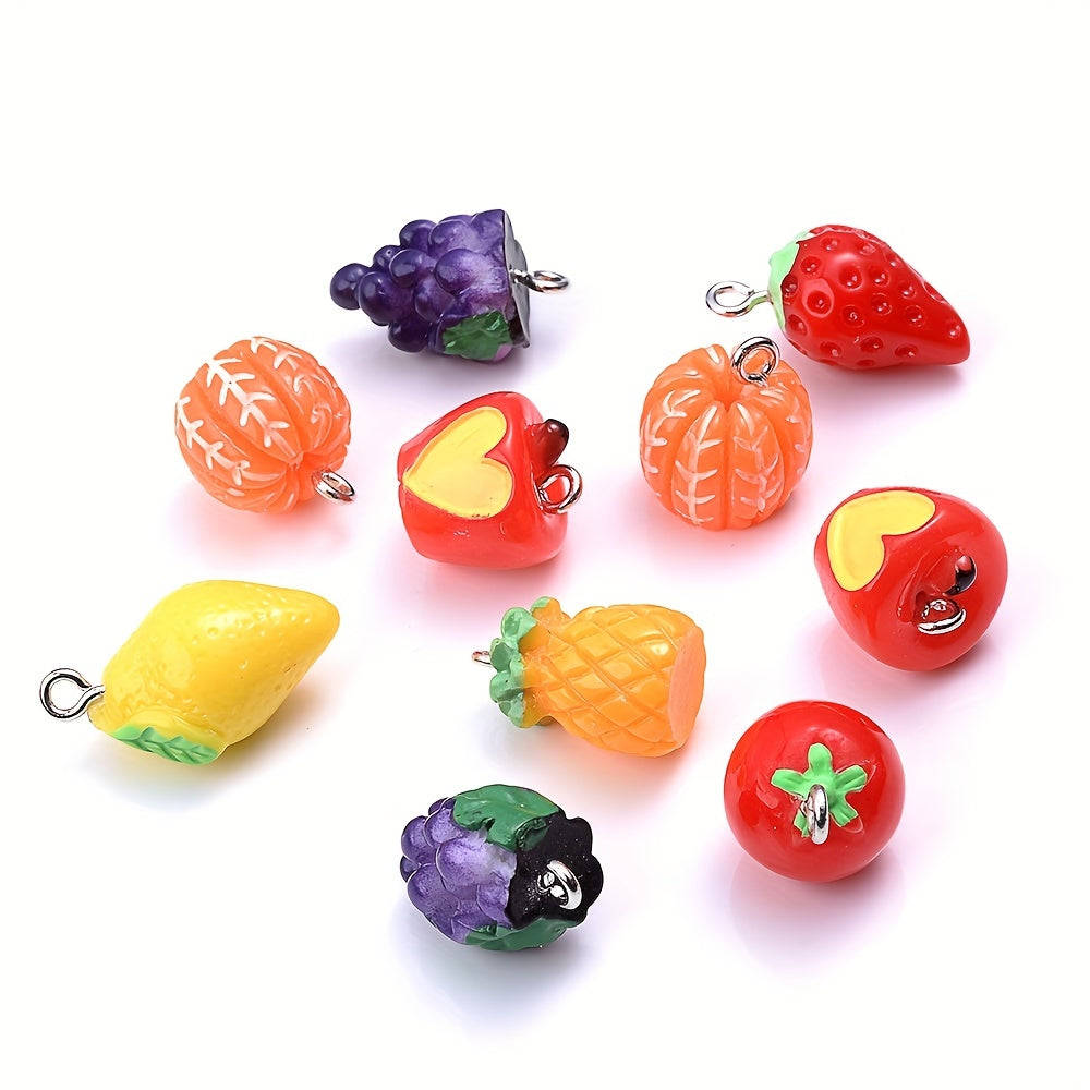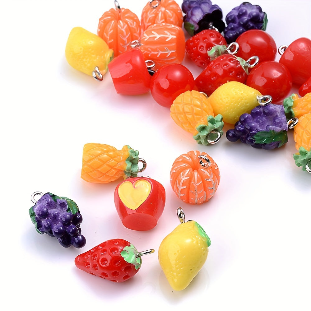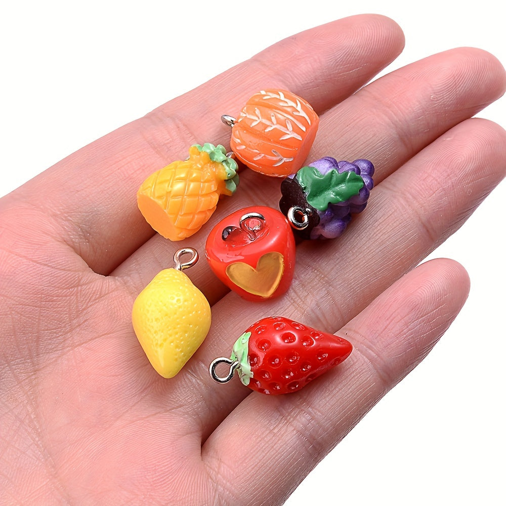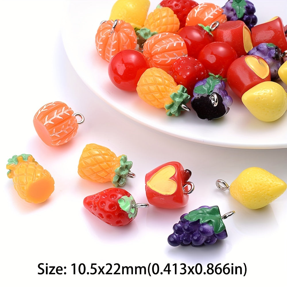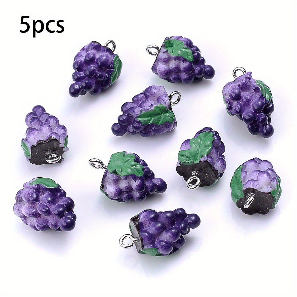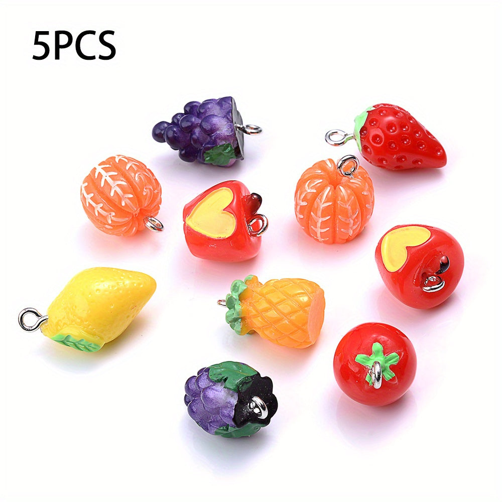Create your own unique jewelry with these 5pcs simulated fruit resin pendants. Perfect for making earrings, keychains, bracelets, and necklaces.