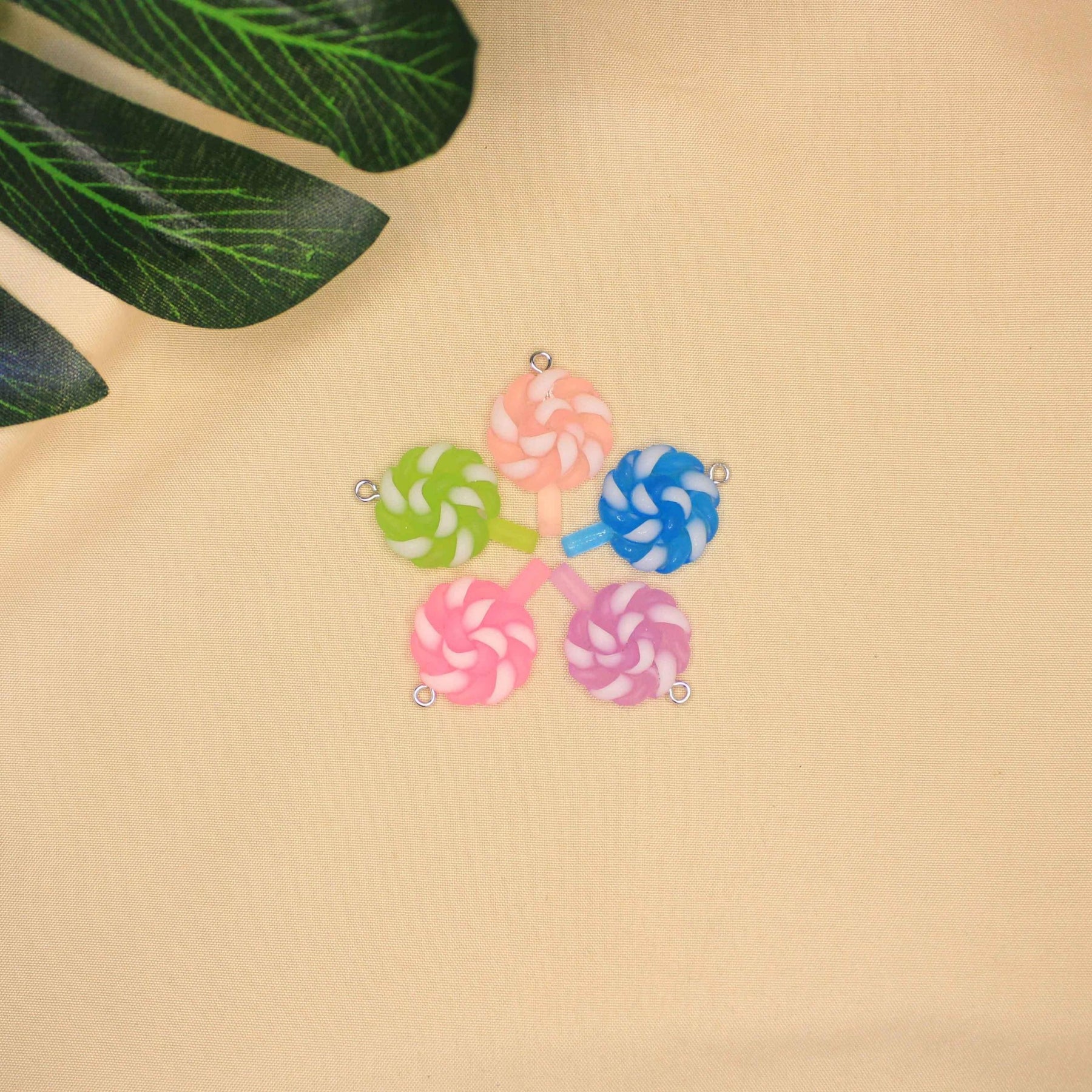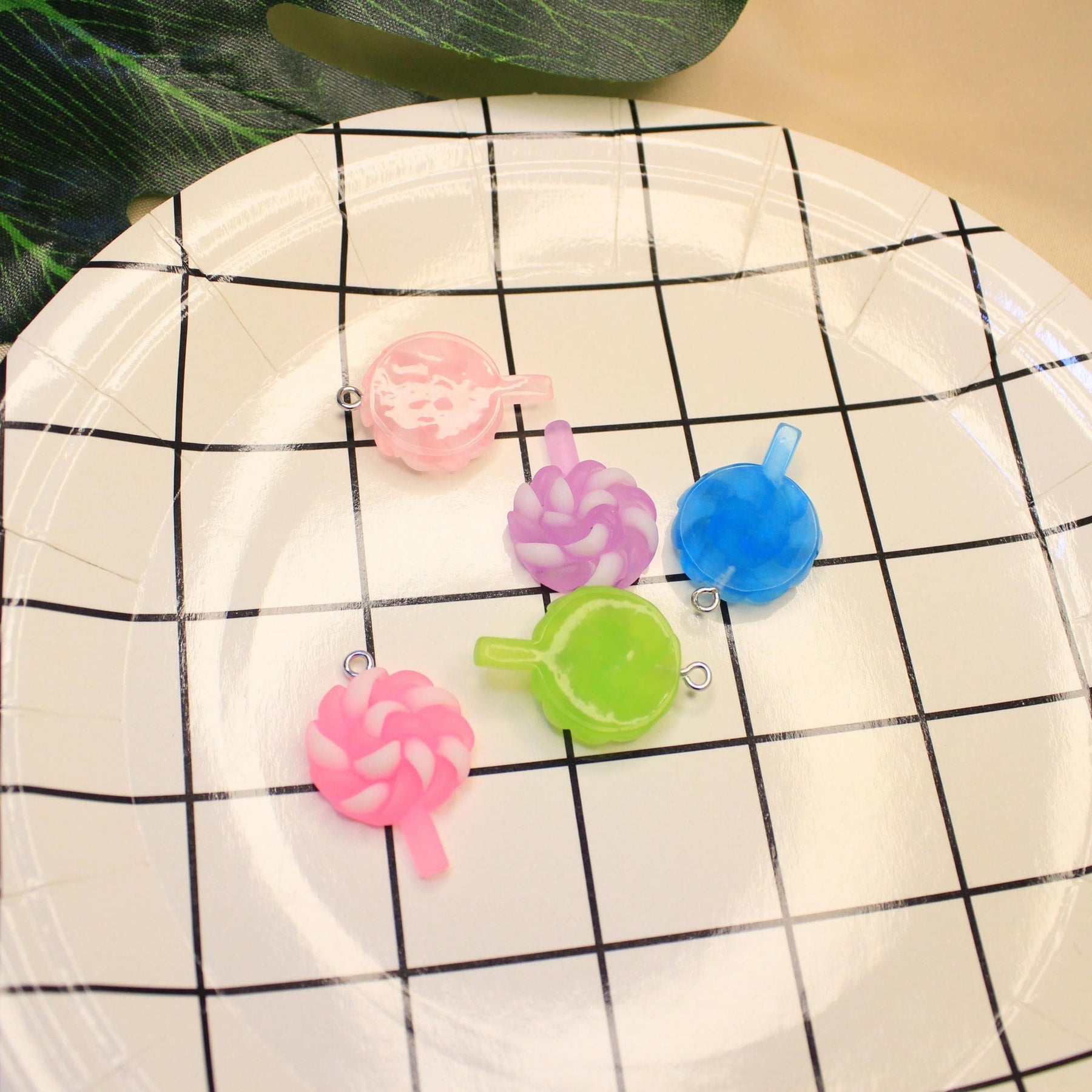 5Pcs Luminous Resin Lollipop Pendant For Jewelry Making