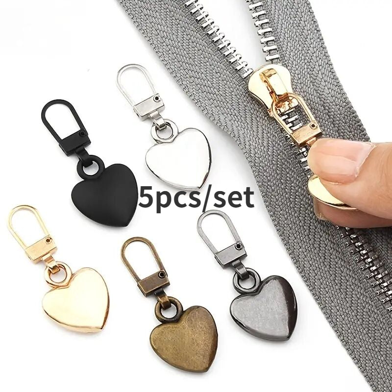 Upgrade your jacket, bag, or shoes with these heart-shaped zipper pull tabs. They are made of durable metal and are easy to attach for a stylish touch.