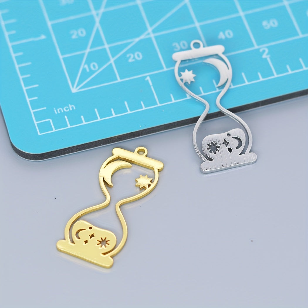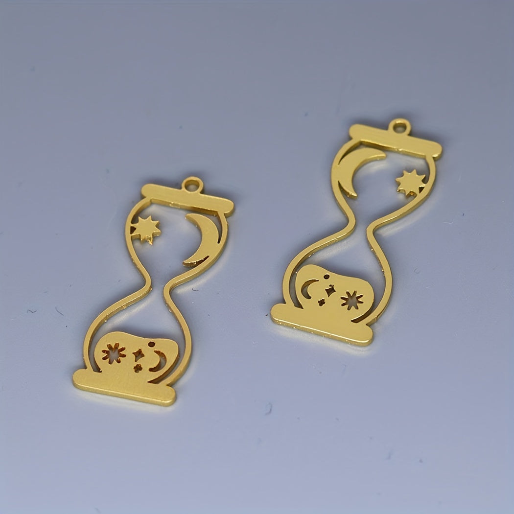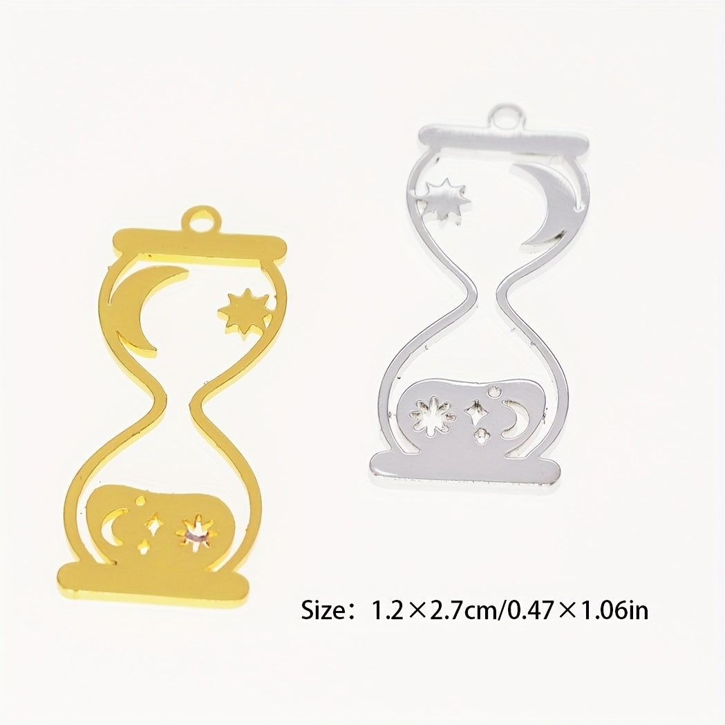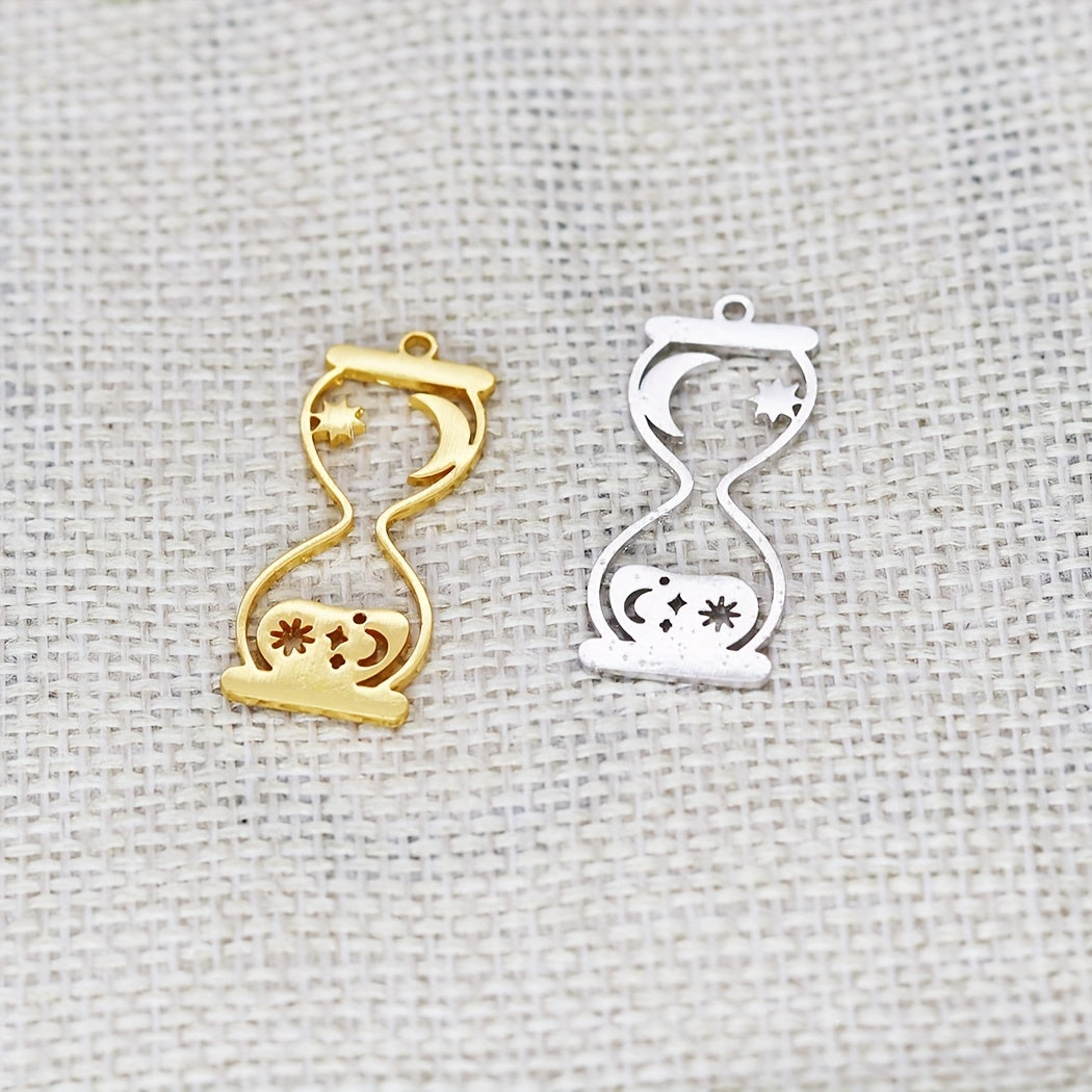 Get 5 classic crescent moon star hourglass charm pendants made of stainless steel for necklaces, bracelets, and crafts making.