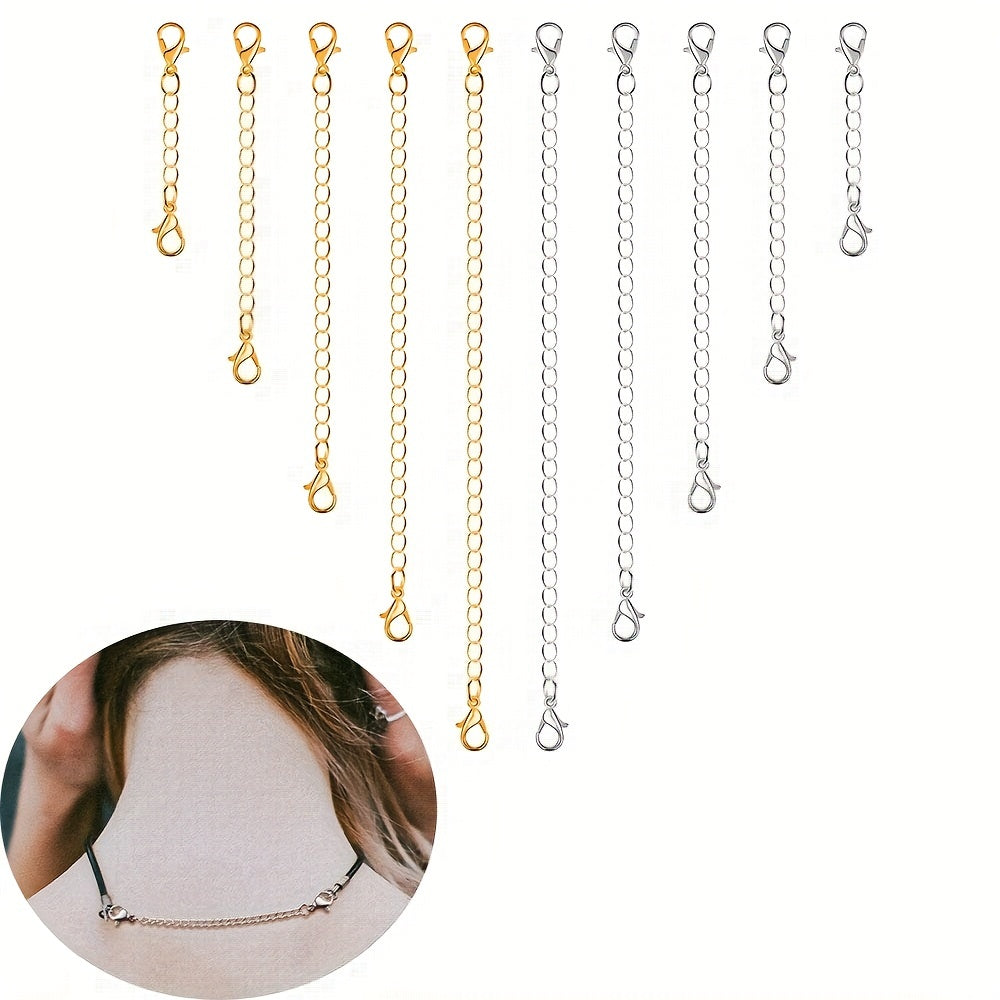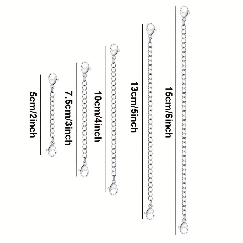 Enhance your jewelry collection with this set of 5 necklace extender chain links. Made of durable stainless steel, these extension chains feature lobster clasps for easy attachment to necklaces, bracelets, or anklets.