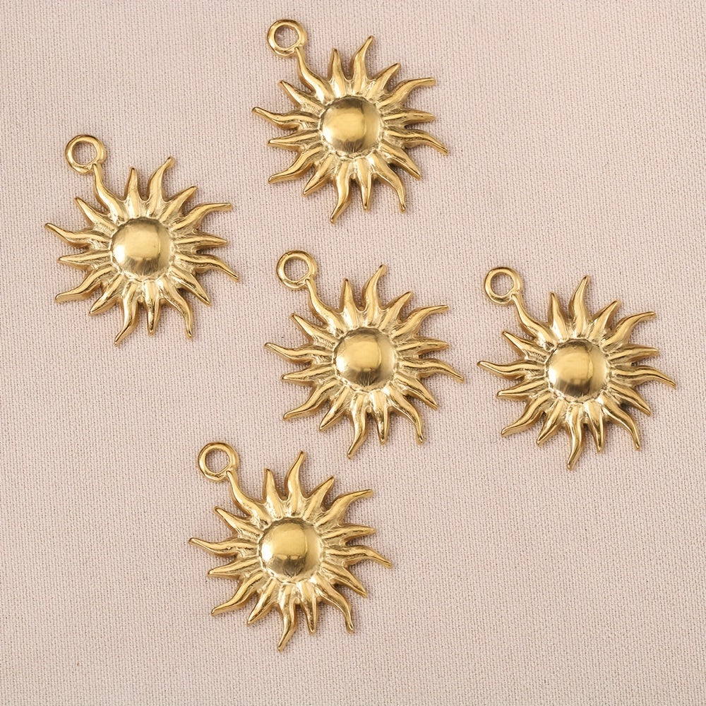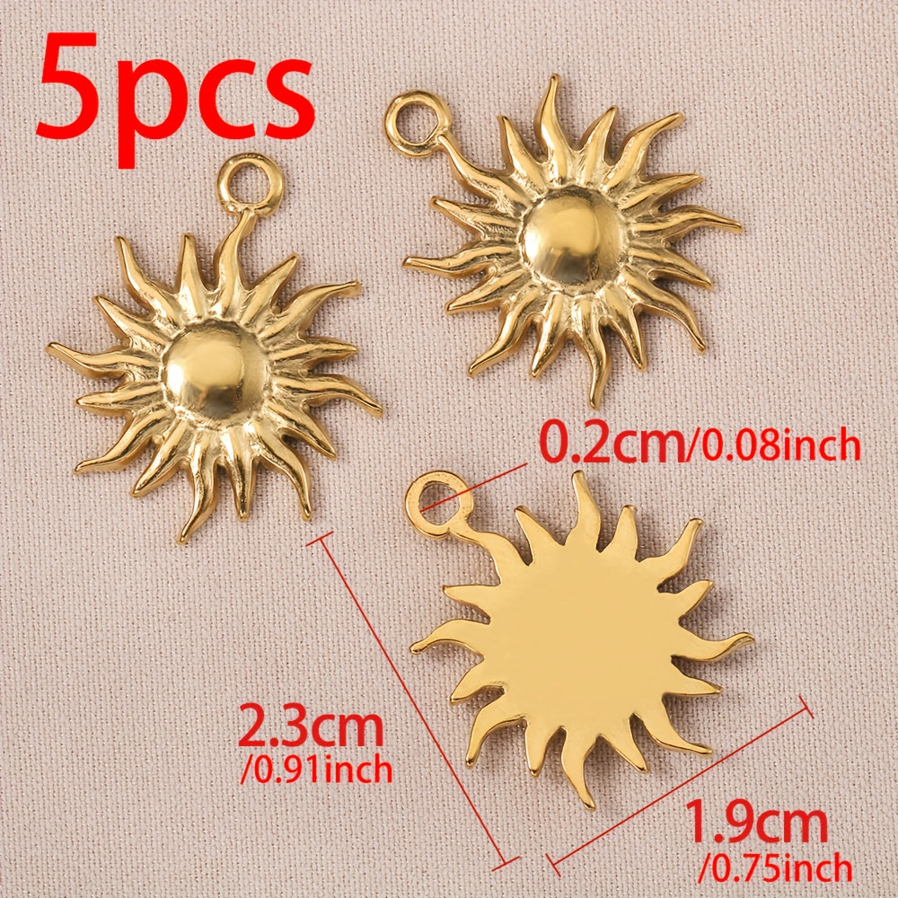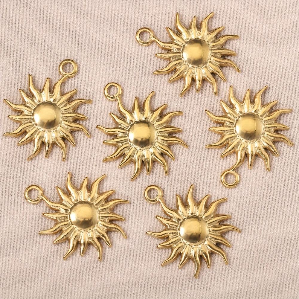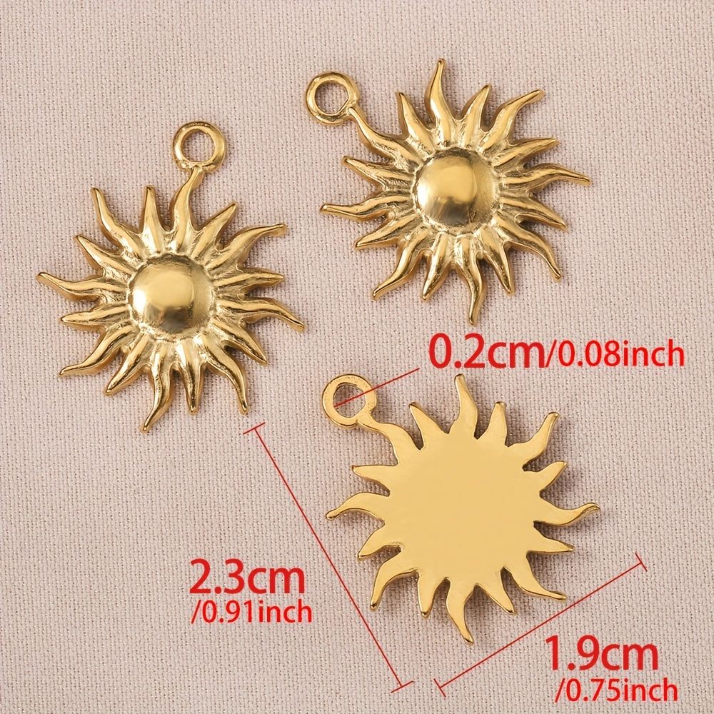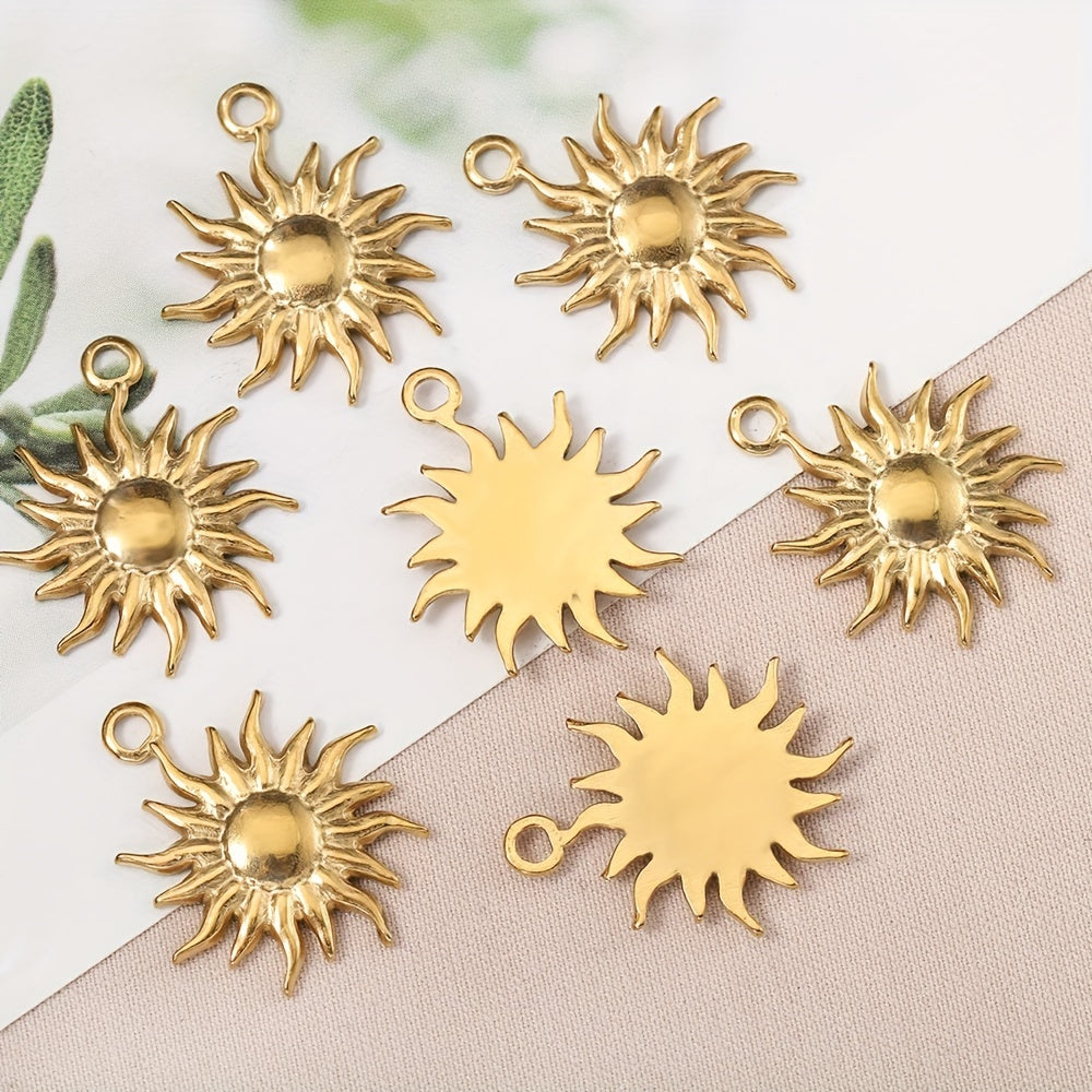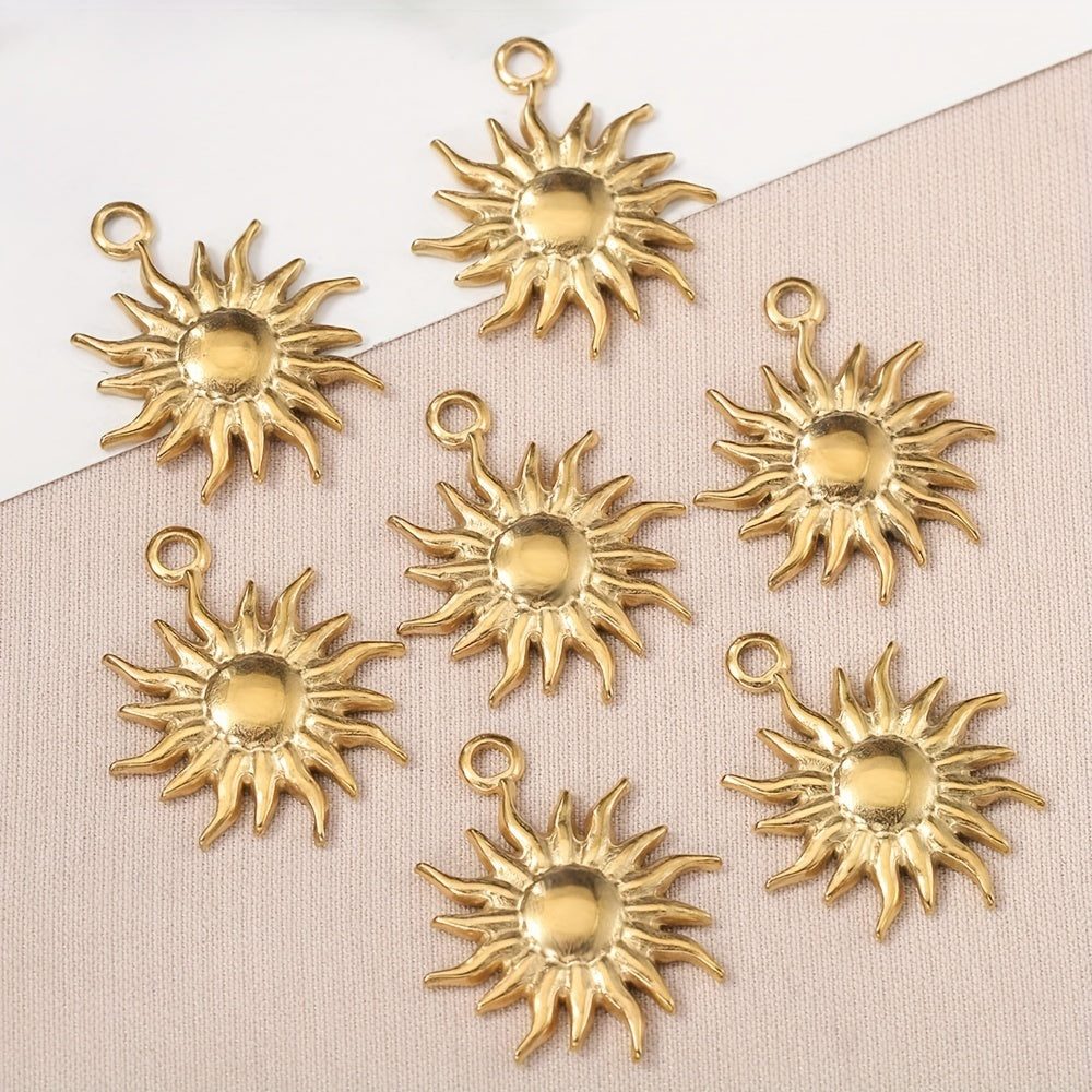 Add a touch of nature-inspired charm to your jewelry with these sunflower pendants. Made of stainless steel with a golden finish, these pendants are perfect for creating unique necklaces and bracelets.